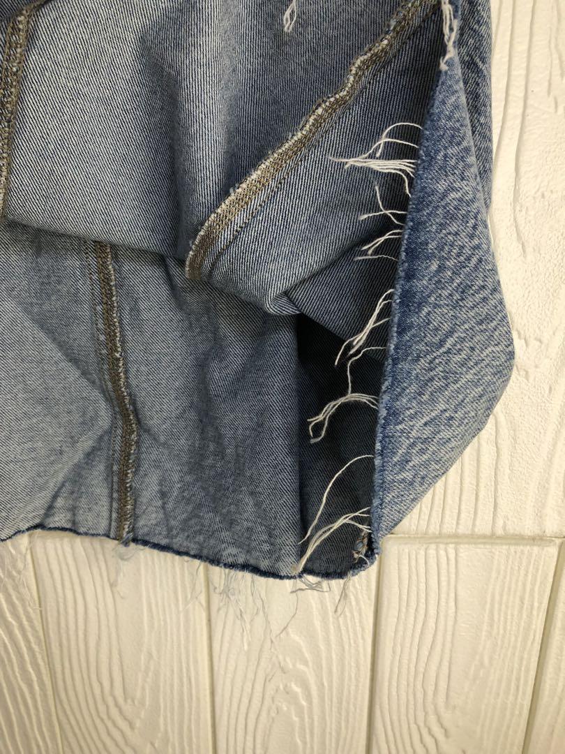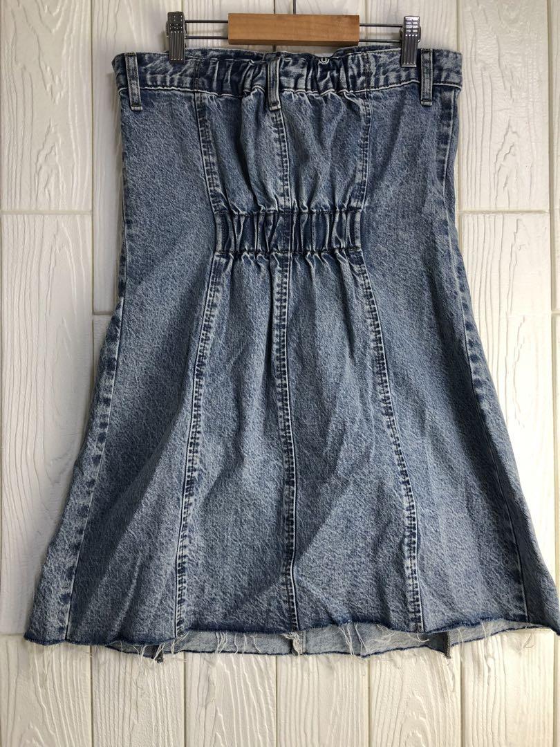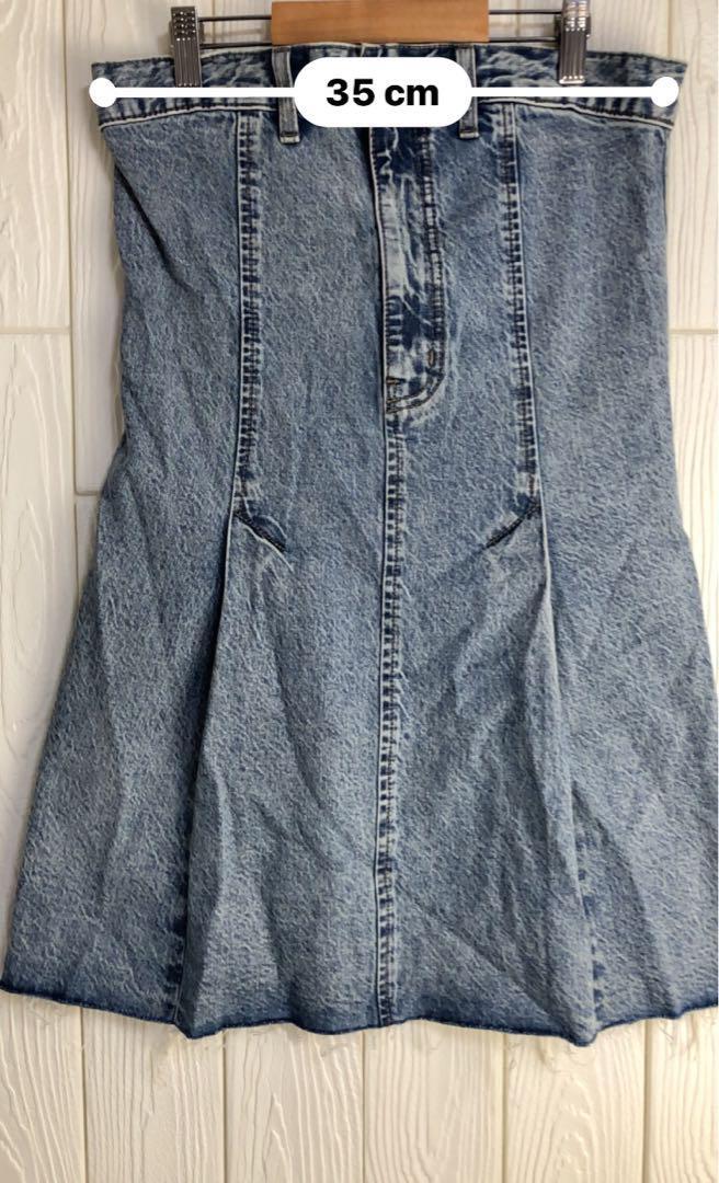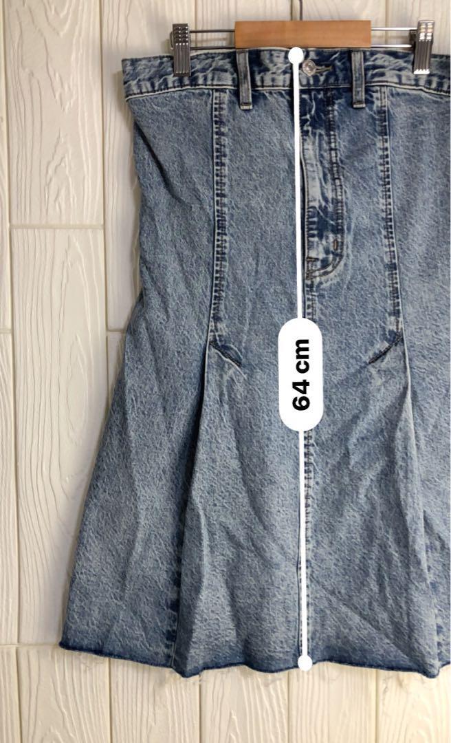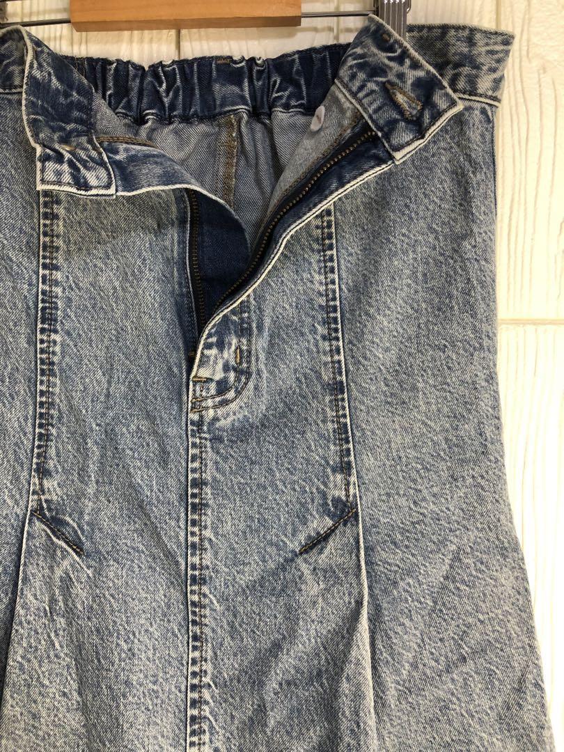 デニム素材のフレアスカート、ウエスト70cm、着丈64cm。