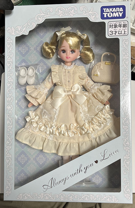 ビスクドールのような洋装のホワイトドレスのリカちゃん