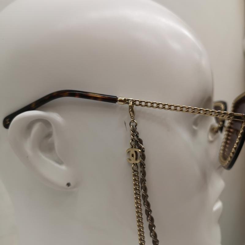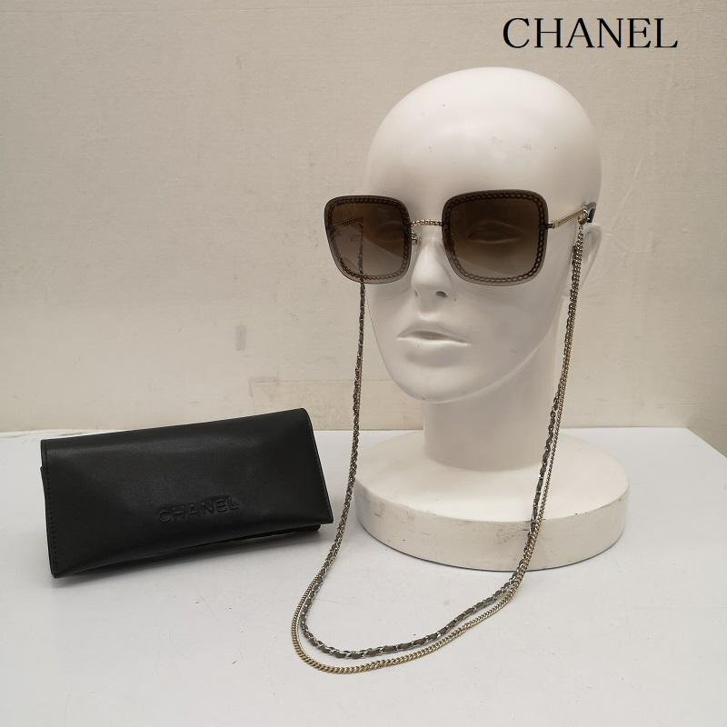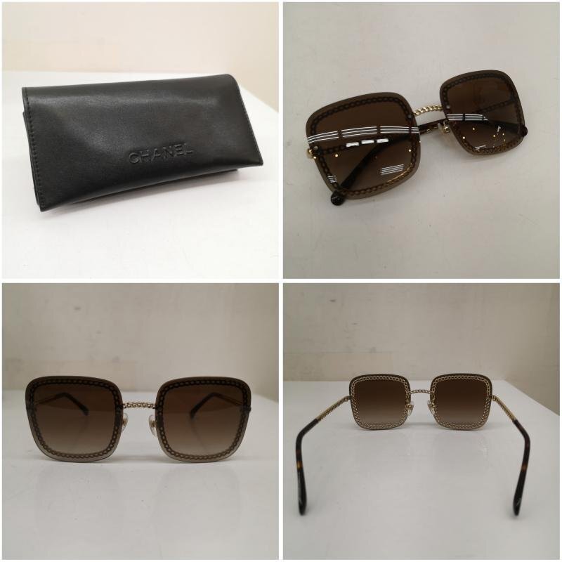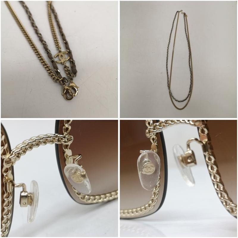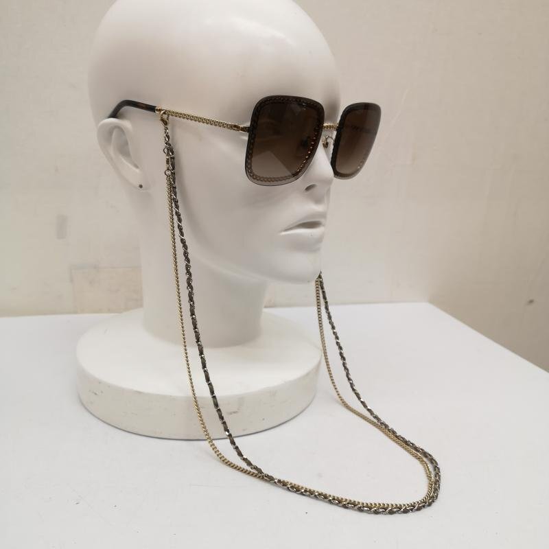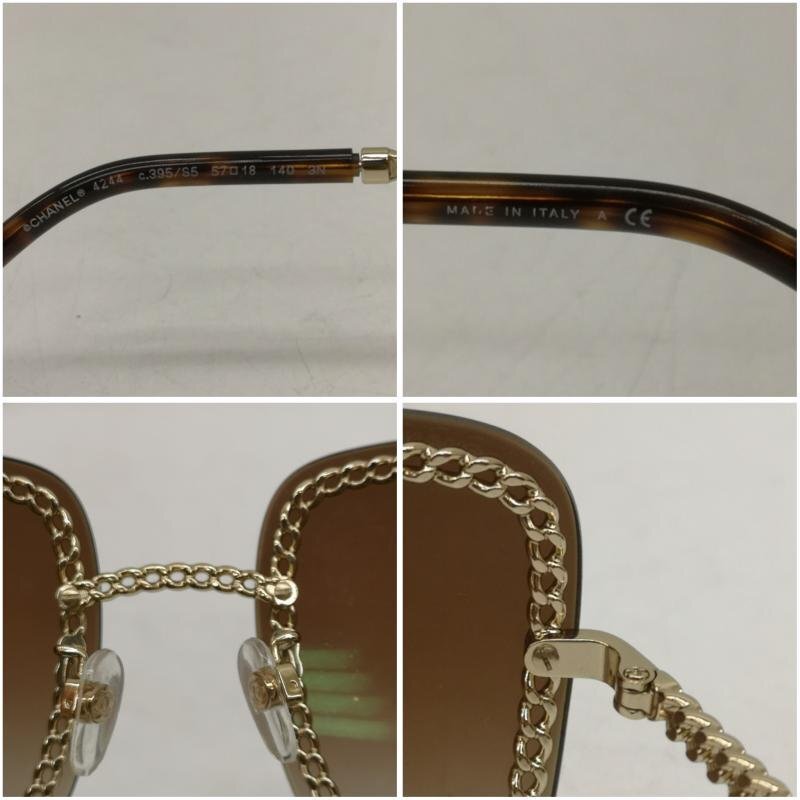 シャネル 4244 c.395/s5 57ロ18 140 スクエア リムレス サングラス 眼鏡 ゴールド 金具 ココマーク チェーン付き -