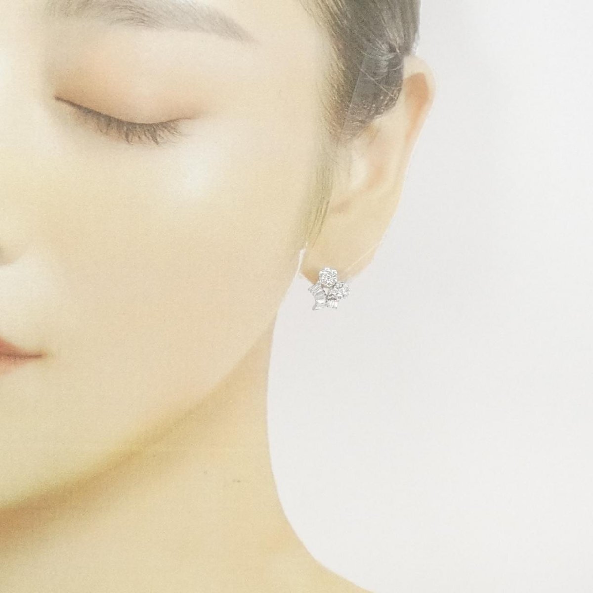 細かな光を放つダイヤモンドがあしらわれたフラワーモチーフのピアス。繊細なデザインが愛らしさをひき立てます。