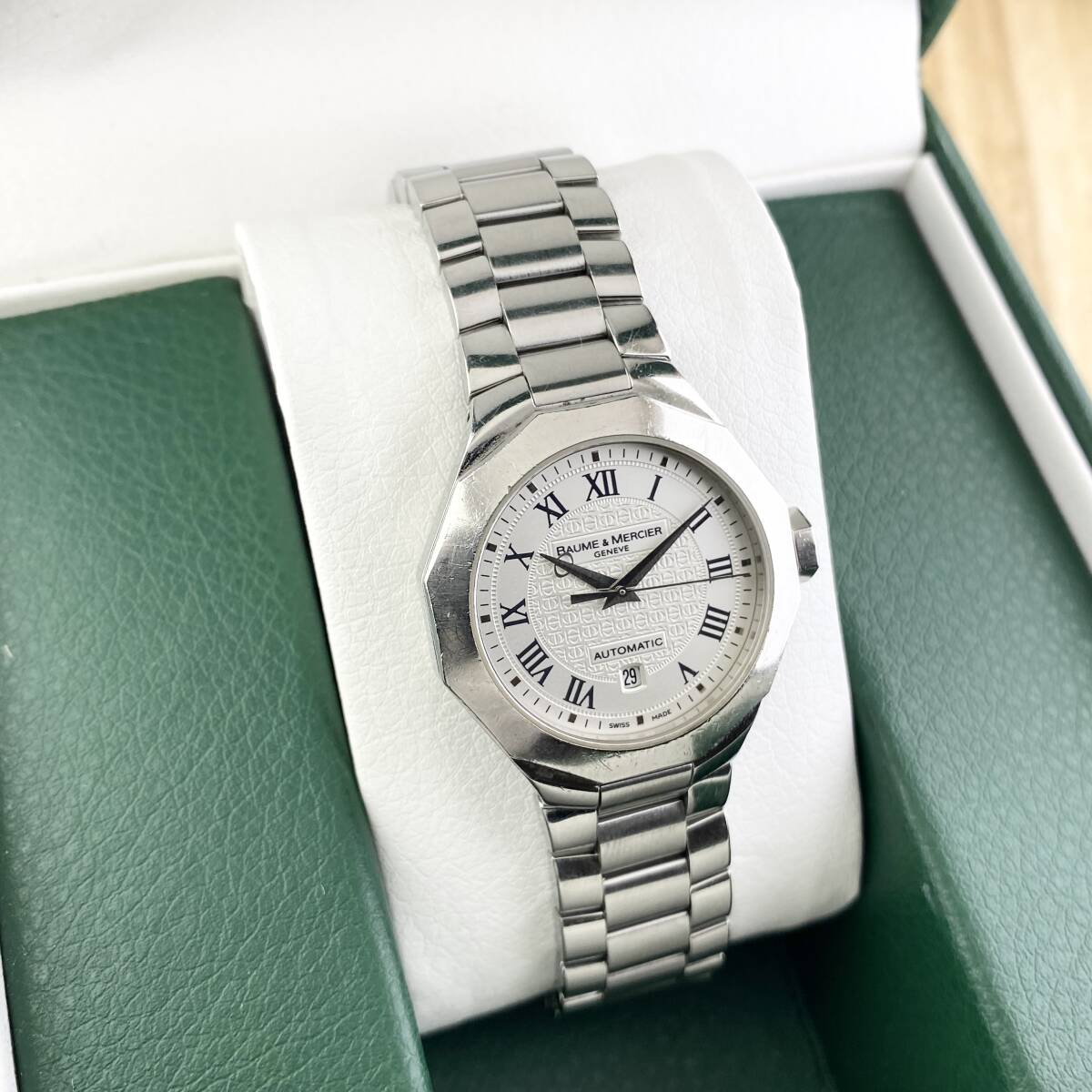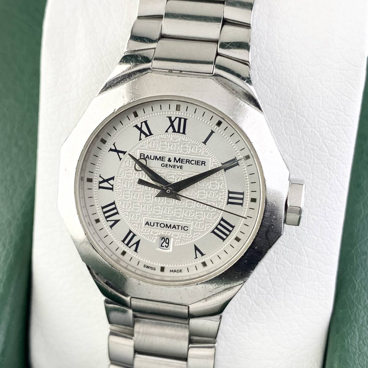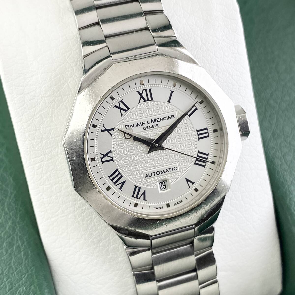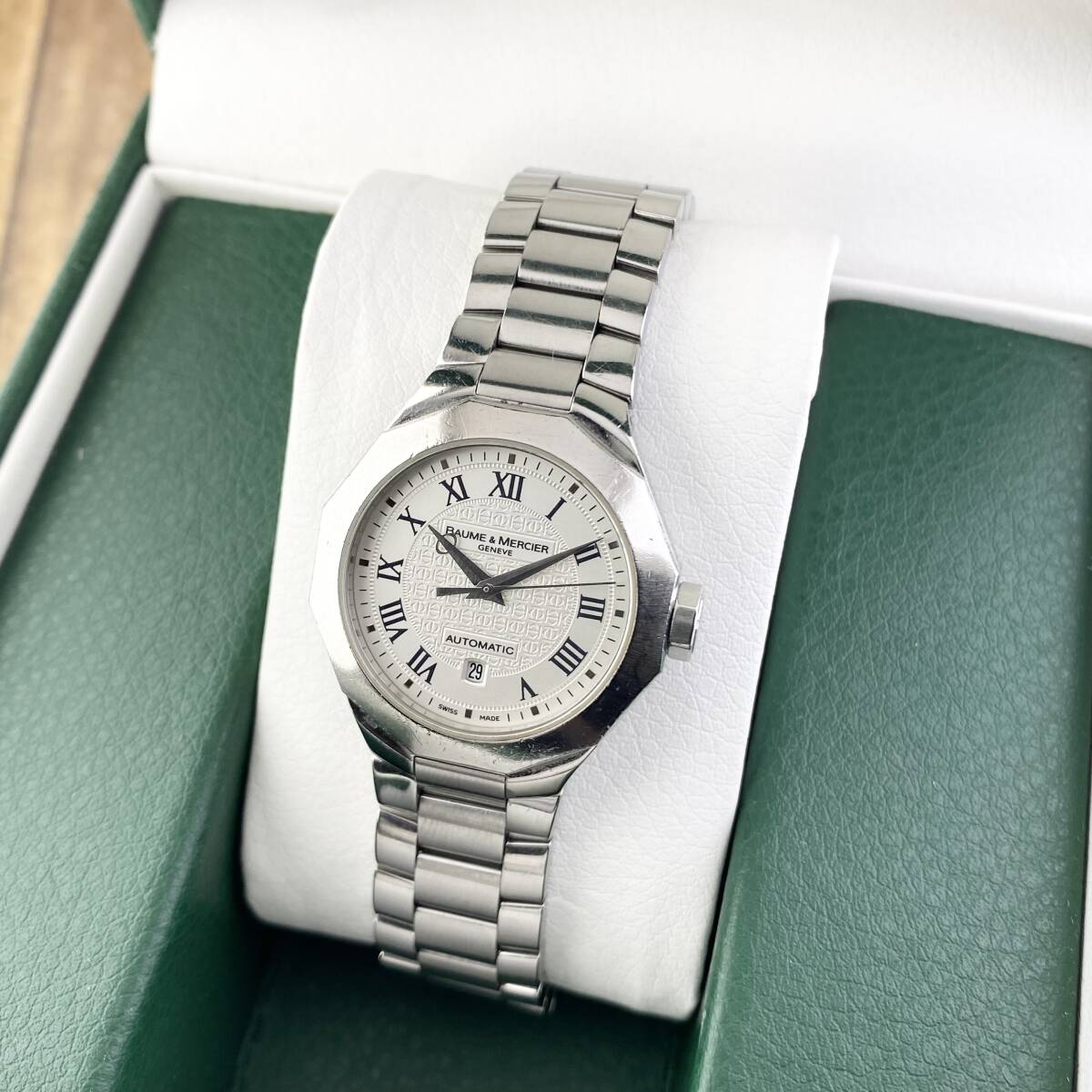 【1円〜】BAUME&MERCIER ボーム&メルシエ 腕時計 レディース AT 自動巻 RIVIERA リビエラ ホワイト文字盤 12角フェイス デイト 可動品 | |||
