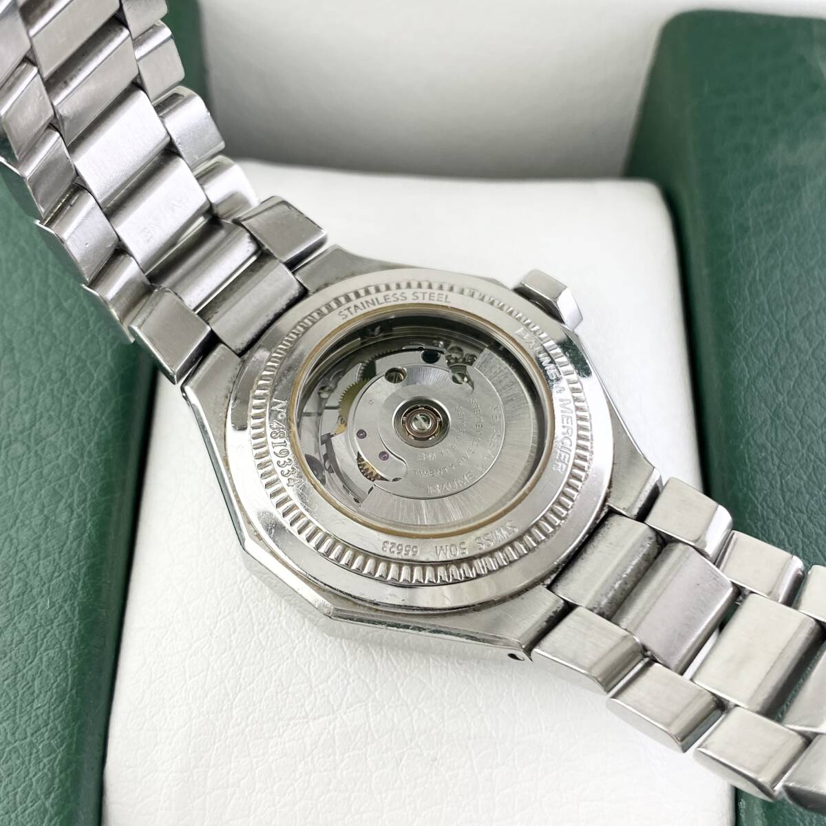 【ブランド名】BAUME&MERCIER ボーム&メルシエ 【ケースサイズ】約2.8cm(リューズ除く) 【ムーブメント】自動巻 【腕回り】約16.5cm 【可動状態】可動 ※日差330秒程度(タイムグラファー計測) 【時刻操作】操作確認済み 【カレンダー操作】操作確認済み 【付属】- 【その他】- 【注意事項】 ・中古品ですので、ご理解を頂いた上での入札をお願い致します。 ・商品のイメージ画像は、撮影時の照明や光の加減等、ご覧のPCモニター等により、微妙に異なって表現される場合がありますので予めご了承下さい。 ・新規IDの入札はお断りしております。 ・現状販売となります。商品状態や説明文をご理解頂いた上での購入をお願いします。またノークレームノーリターンでお願いします。 ・QZ時計で不動と記載のある場合は電池交換後の動作保証は出来ません。 ・万が一、動作説明との相違や偽物だった場合は商品到着7日以内にご連絡をお願いします。尚、お客様都合による返品はお応え出来ません。 ・ご連絡は48時間以内にお願い致します。3日経過してご連絡頂けない場合には、お取引のご意志が無いものとして、落札者様都合のキャンセルとさせて頂きます。 ・撮影に箱を使用しており、付属品の項目に何も記載が無い場合は箱は付きません。 ・海外発送は致しませんので、ご了承下さい。 ・リサイクル段ボールを利用する場合がありますので、予めご了承ください。 【お知らせ】 ・他にも出品していますので、ぜひご覧ください。 誠心誠意・迅速な対応を心がけ、対応させて頂きます。また最後までご覧くださり、ありがとうございます。 | |||