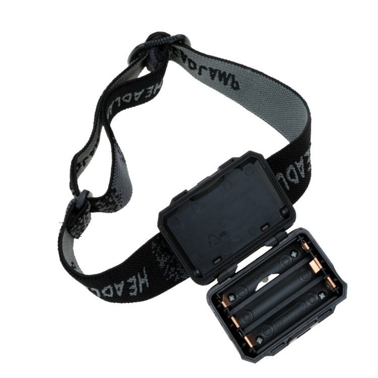 最大約50ルーメンの明るさで点灯する乾電池式小型ヘッドライトです。