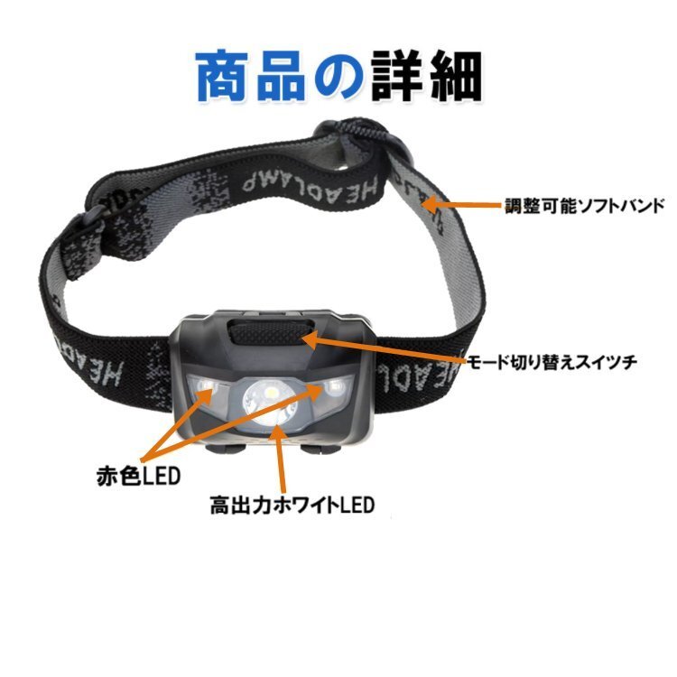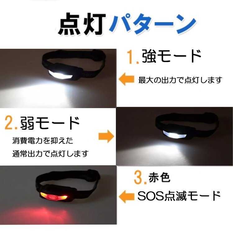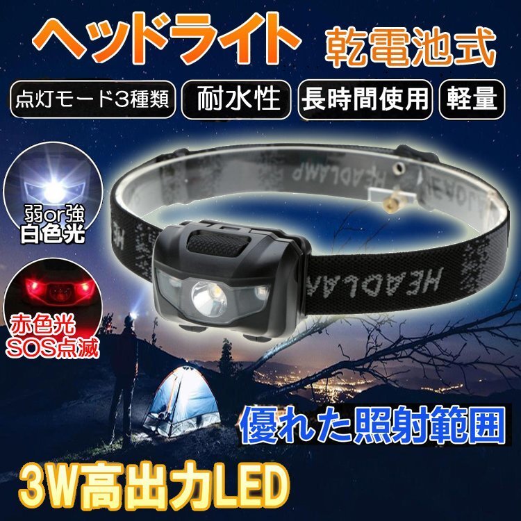 ◆ヘッドライト 乾電池式 点灯モード3種類 弱 強 SOS点滅 伸縮性ストラップ 取付便利 軽量 耐水 キャンプ 登山 夜釣り ジョキング 犬の散歩 自転車ライトにも 防災グッズ HDL2003W