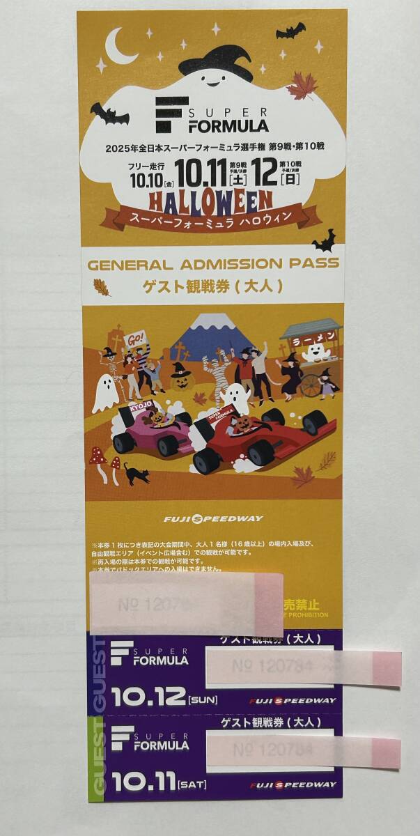 2025年全日本スーパーフォーミュラ選手権 第9・10戦の招待券1枚です。