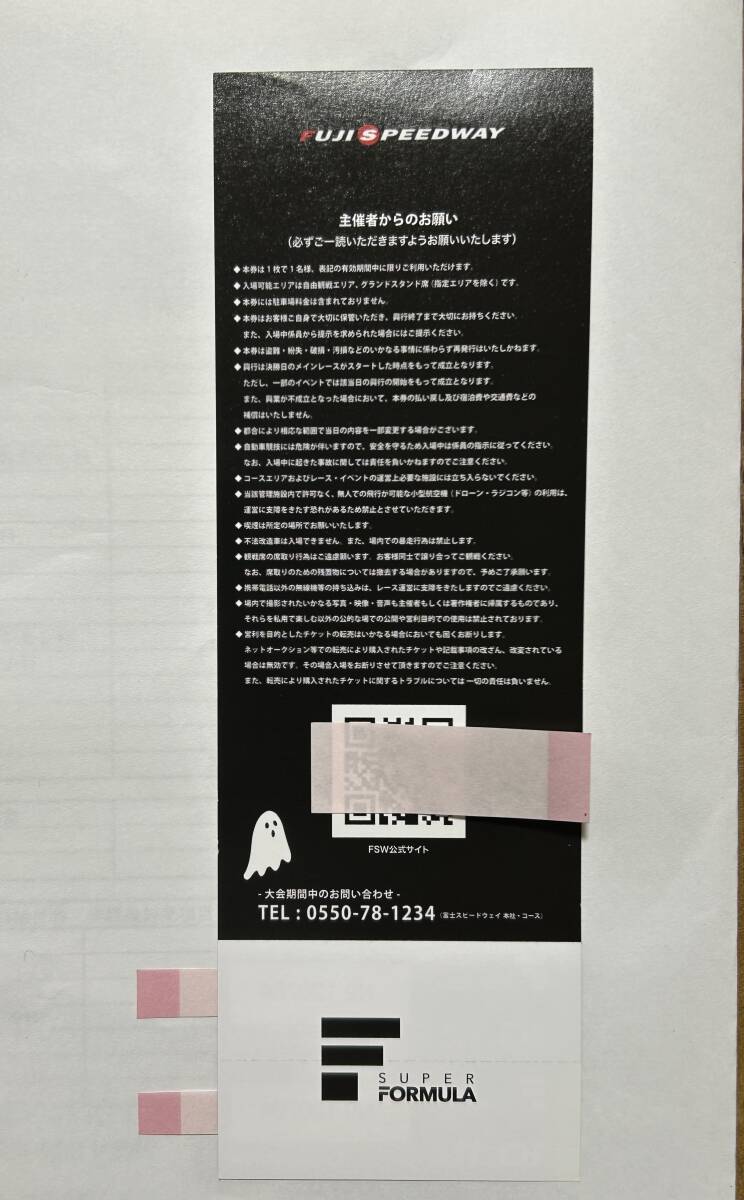 スーパーフォーミュラ選手権 第9・10戦 富士スピードウェイ チケット1枚