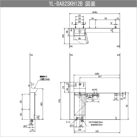 ※特にご指示が無い場合は、『床給水・床排水』にて出荷致します。