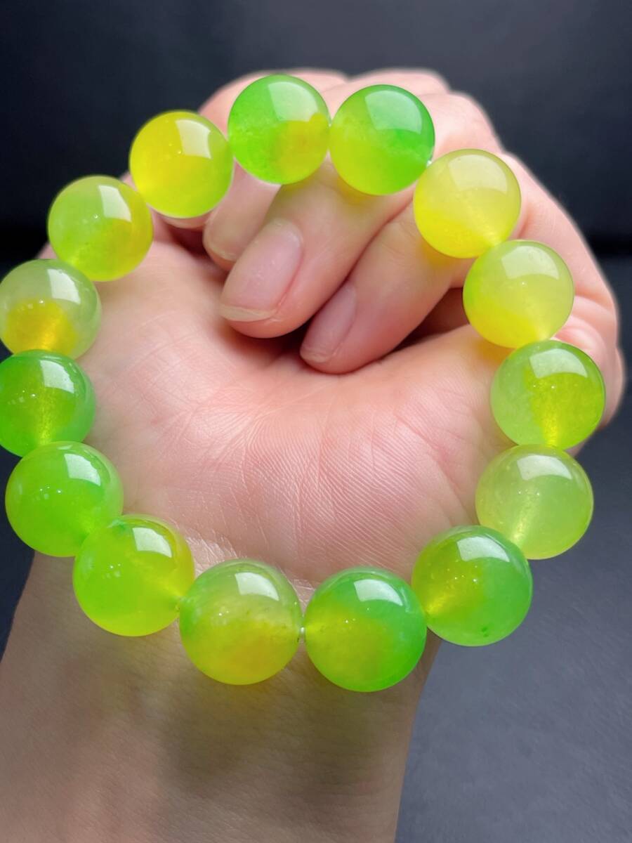 Aグレード翡翠彫 清時代 高氷 氷種の黄翡飄翠手串ブレスレット 首飾 時代物 古董品 骨董 旧家蔵出し 唐物 中国古玩 古美術品101
