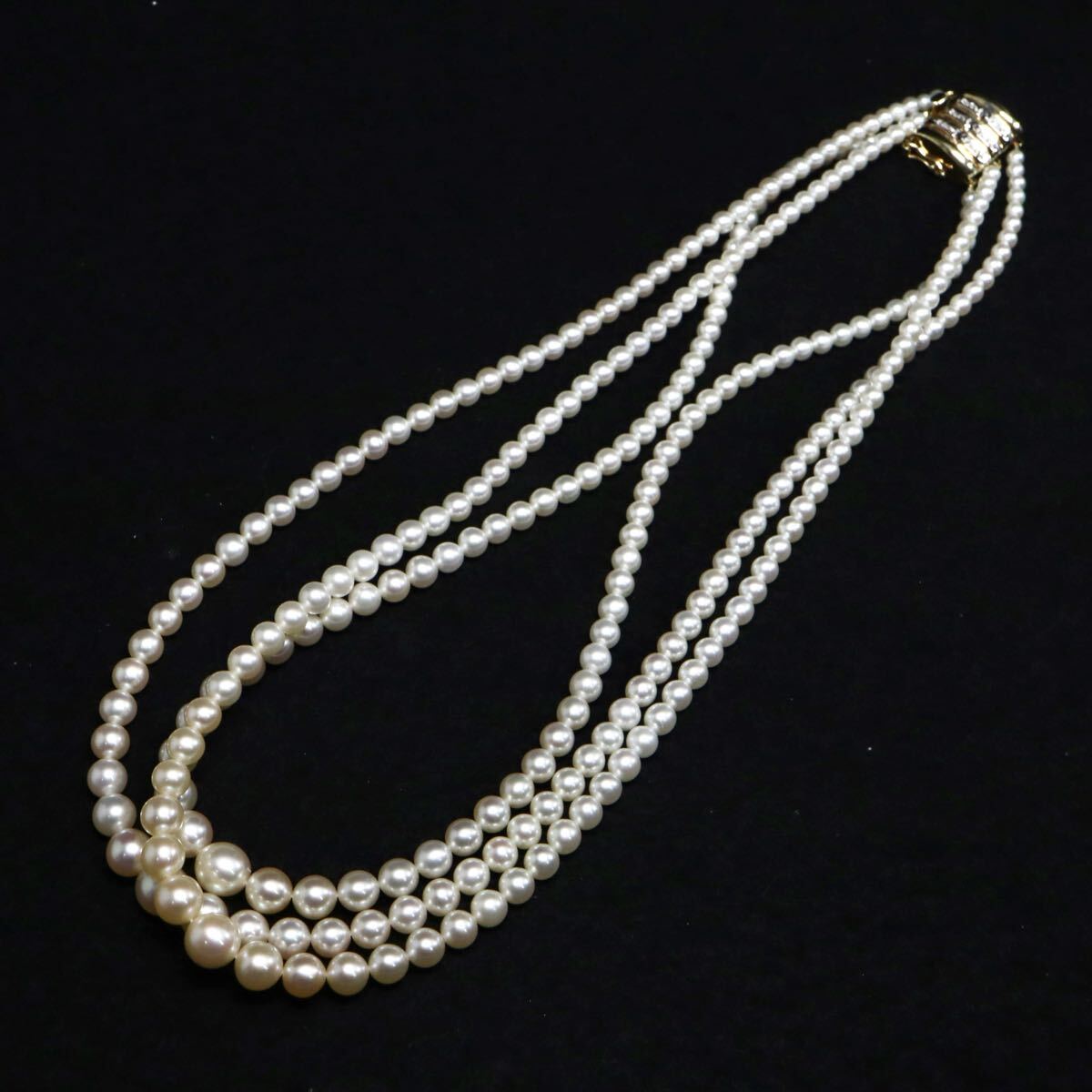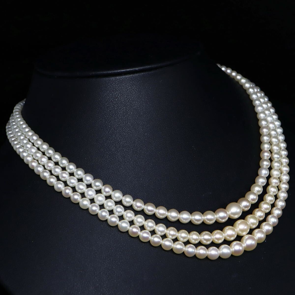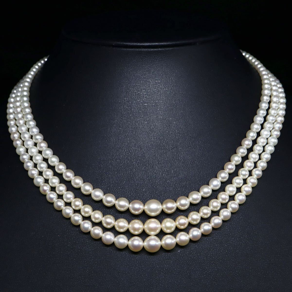 〈アコヤ本真珠3連グラデーションネックレス〉