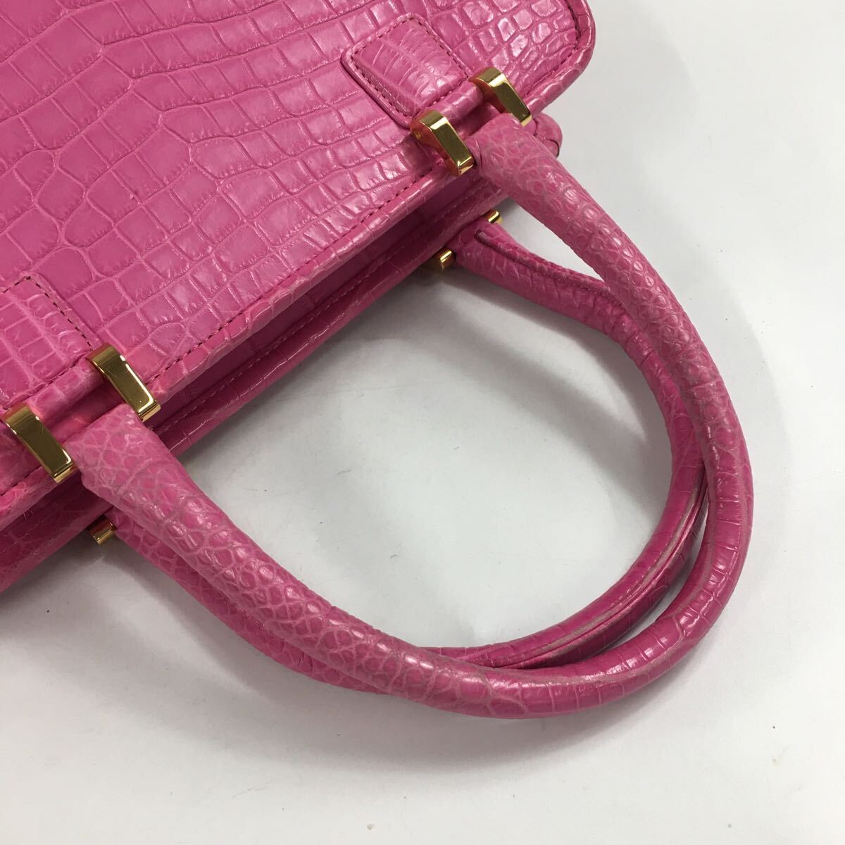 ★F09075【JRA認定】La luce ラルーチェ/ハンドバッグ/クロコダイル/ピンク | |