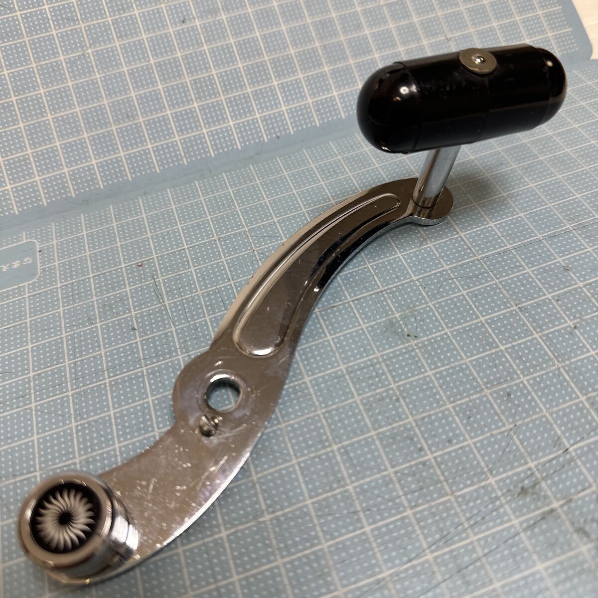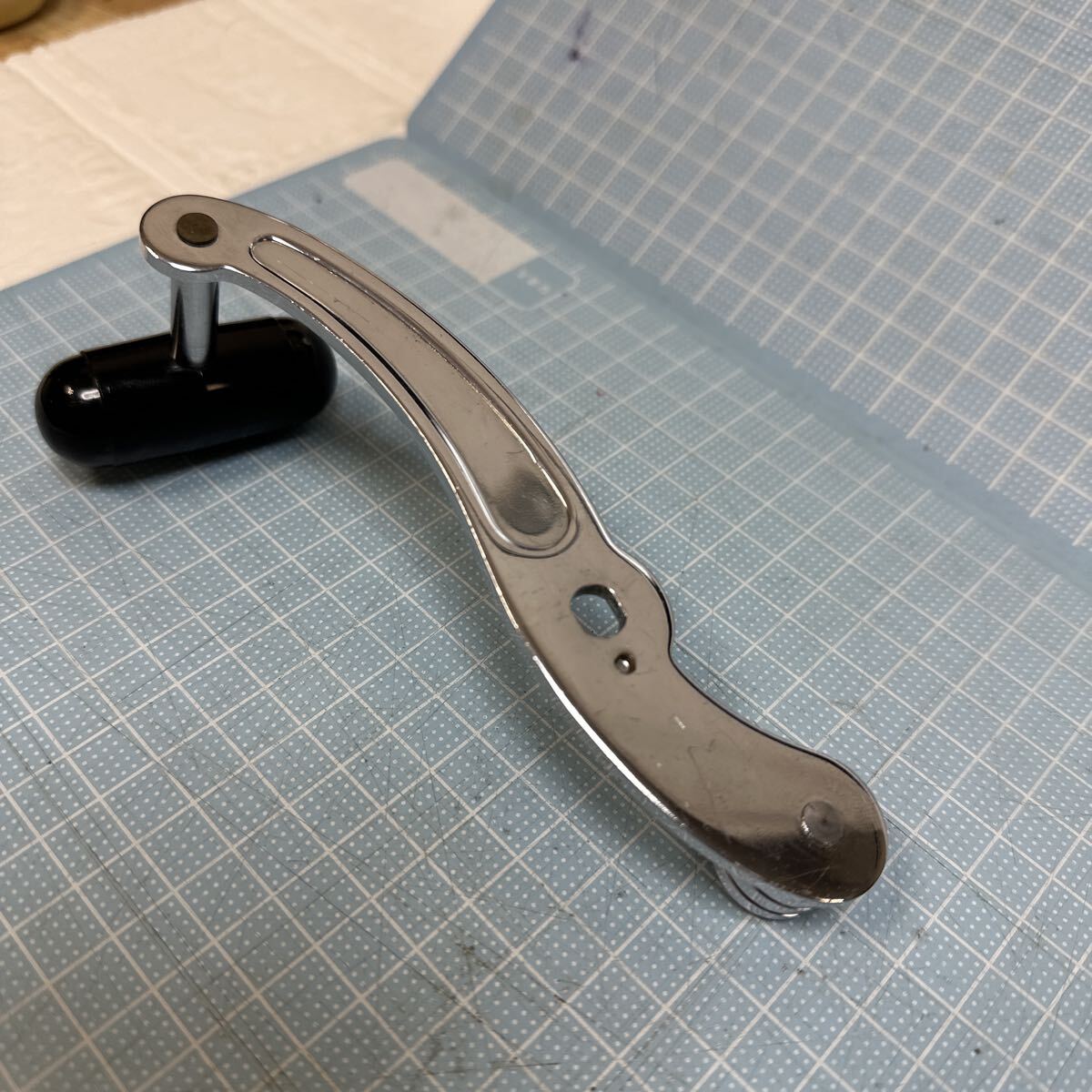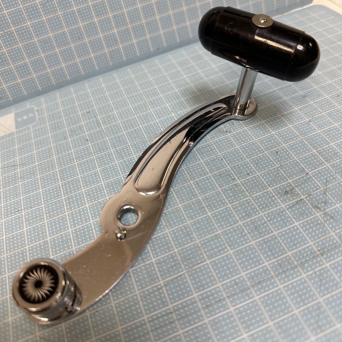 ハンドル中古不明の品、リール取り付け部穴8.4X7.4mm位、画像にてご確認くださいよろしくお願いします。