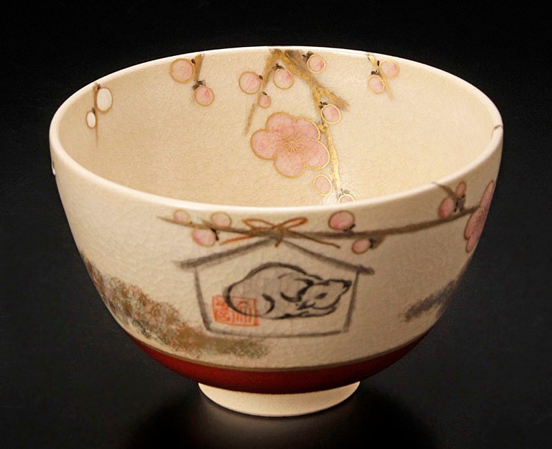 【古美味】清閑寺窯 杉田祥平造 色絵初詣之図大福茶碗 茶道具 保証品 |