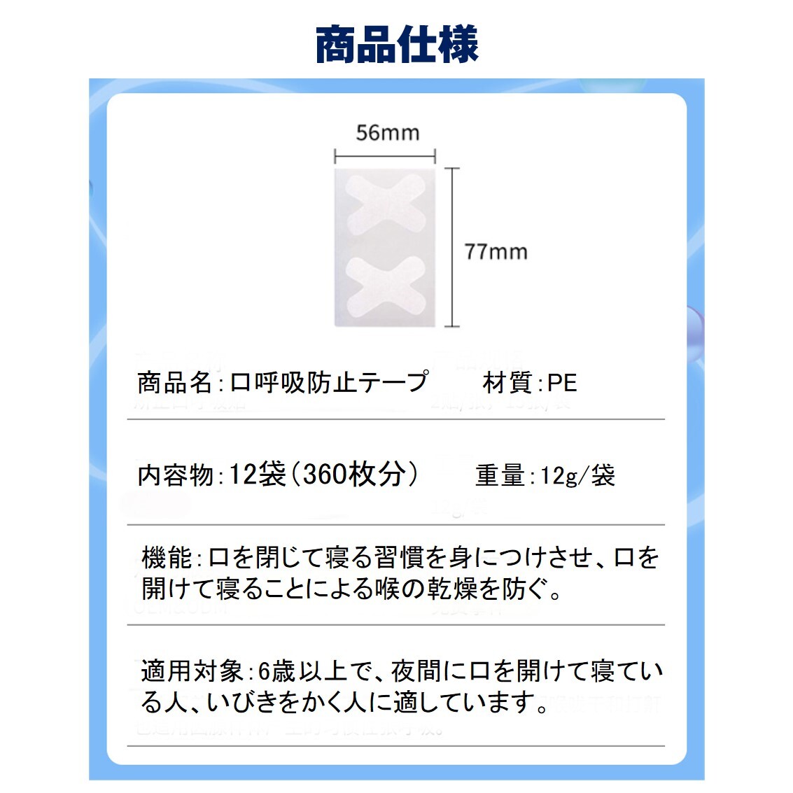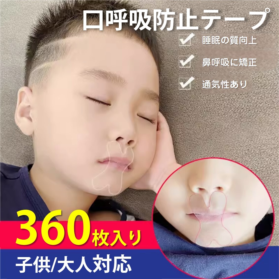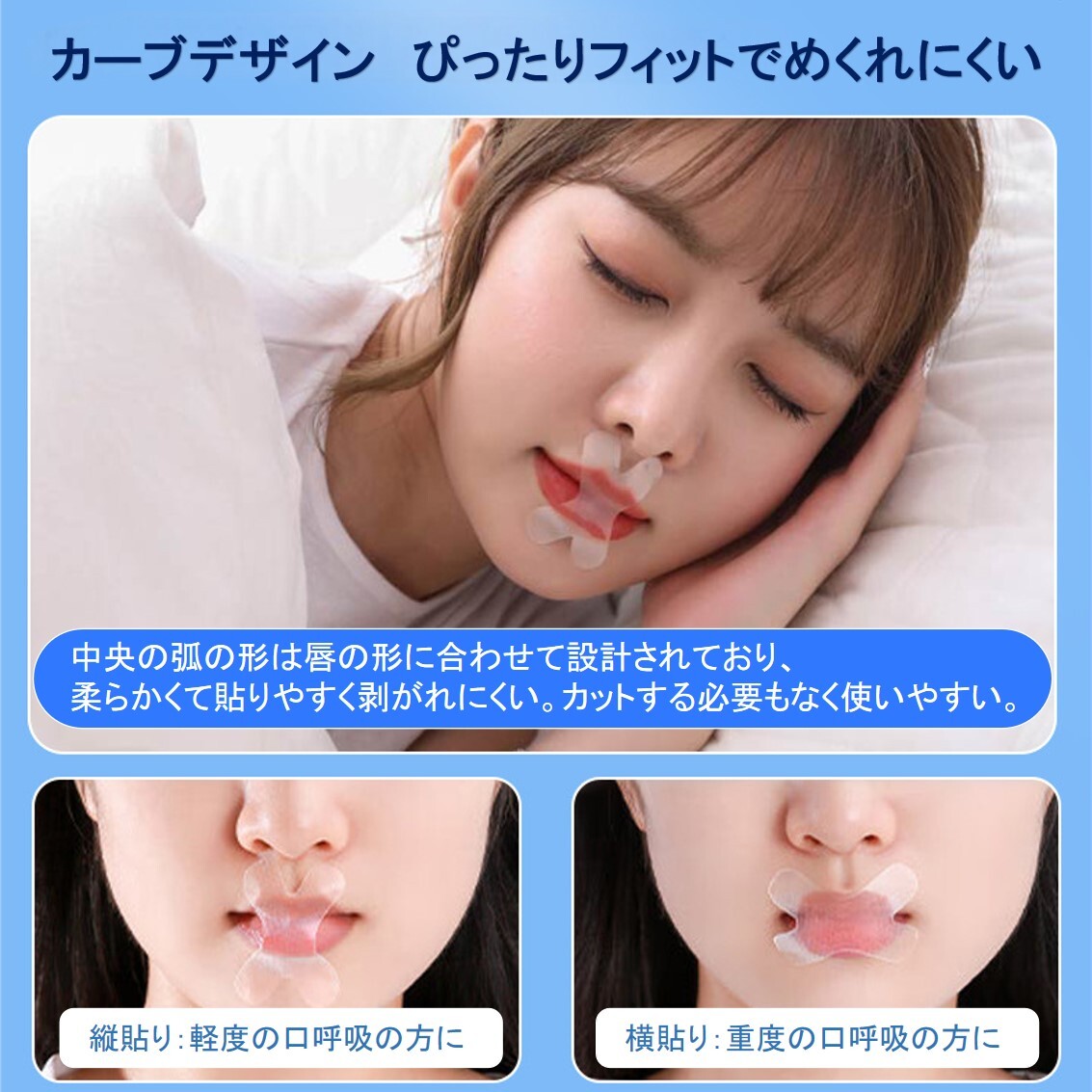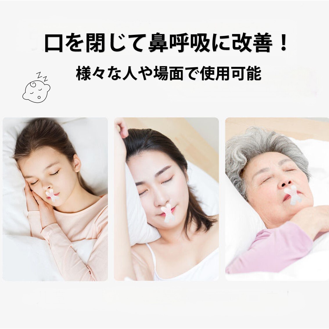 | 口呼吸を改善し、いびきや口腔トラブルを軽減する口呼吸防止テープ! |