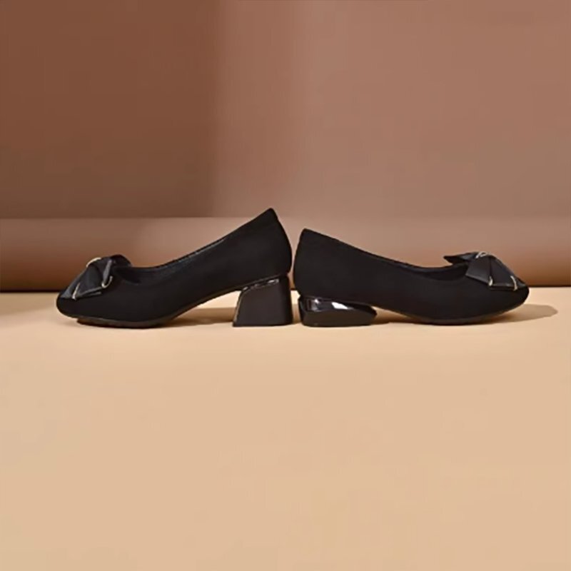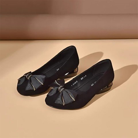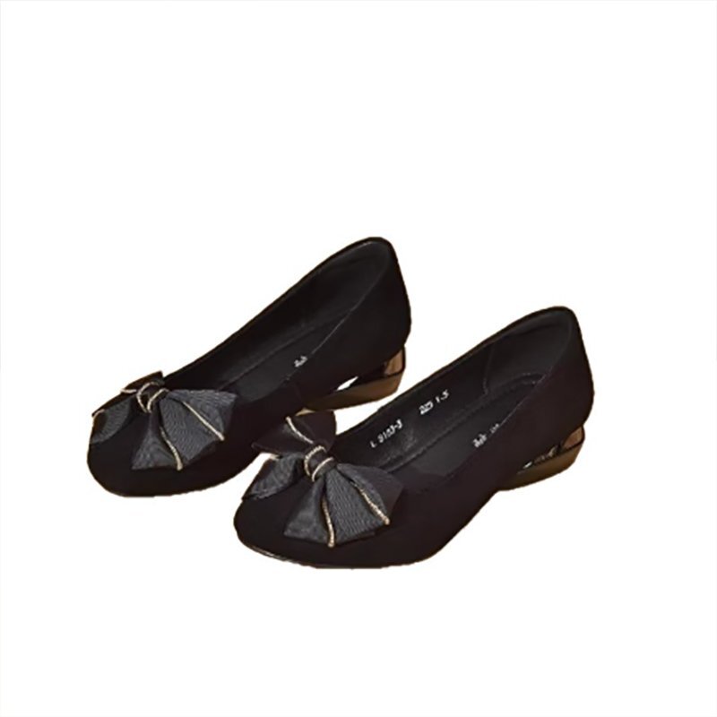 レディース パンプス ミュール 靴 リボン フラットパンプス ぺたんこ 蝶結び オシャレ 23.5cm(37) 黒