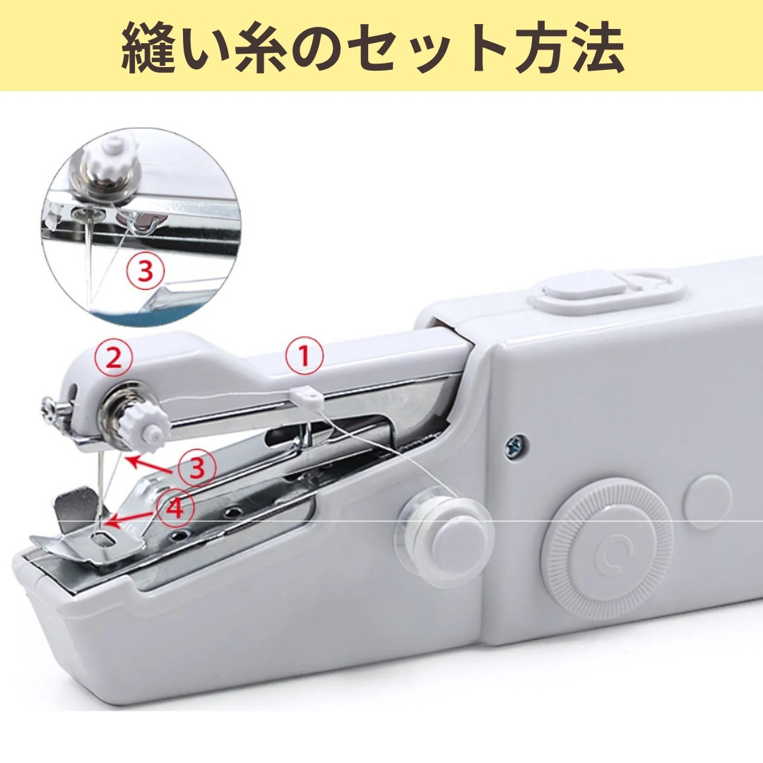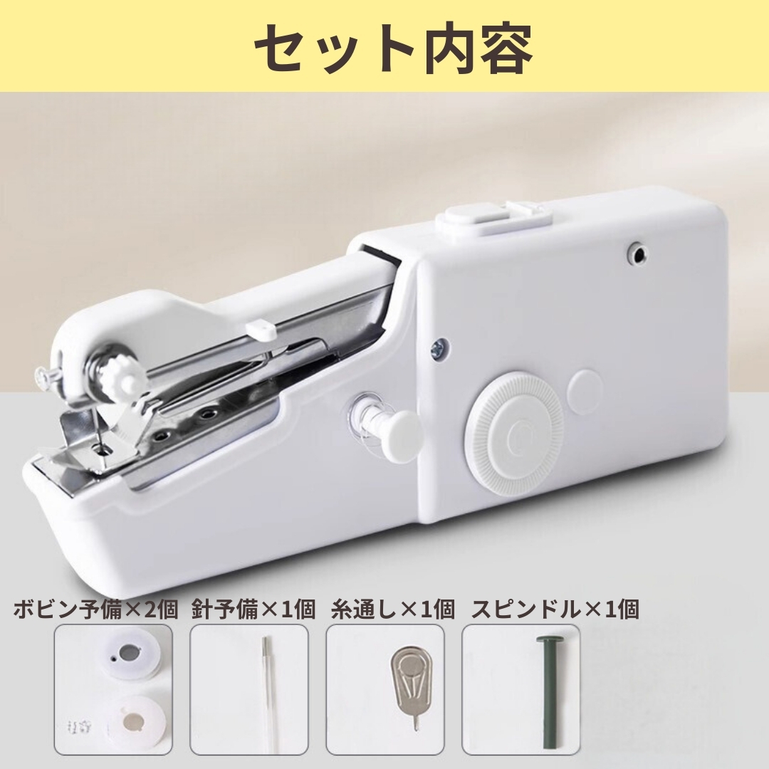 ハンディミシン ホワイト 電動 小型 ハンドミシン コンパクト 軽量 電池式 ポータブル 持ち運び便利 片手操作 送料無料 匿名配送