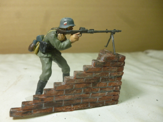 | 商品説明 | タミヤ製1/35ドイツ国防軍歩兵MG34ガンナー&レンガ付完成品です。 塗装は下地処理してからの刷毛塗りで、足には透明のプラ板が接着して有ります。 MG34はフィギュアに接着して有ります。 | |