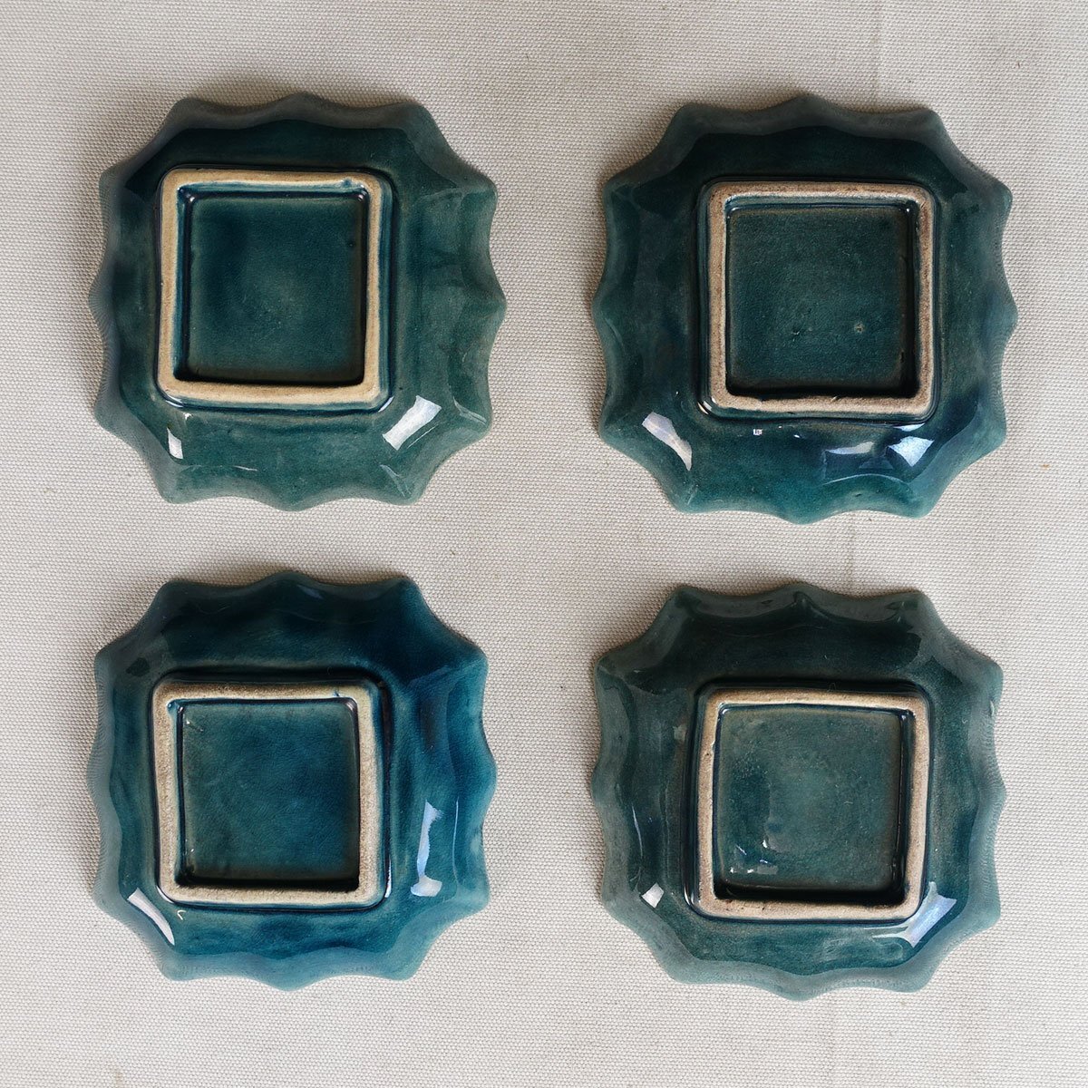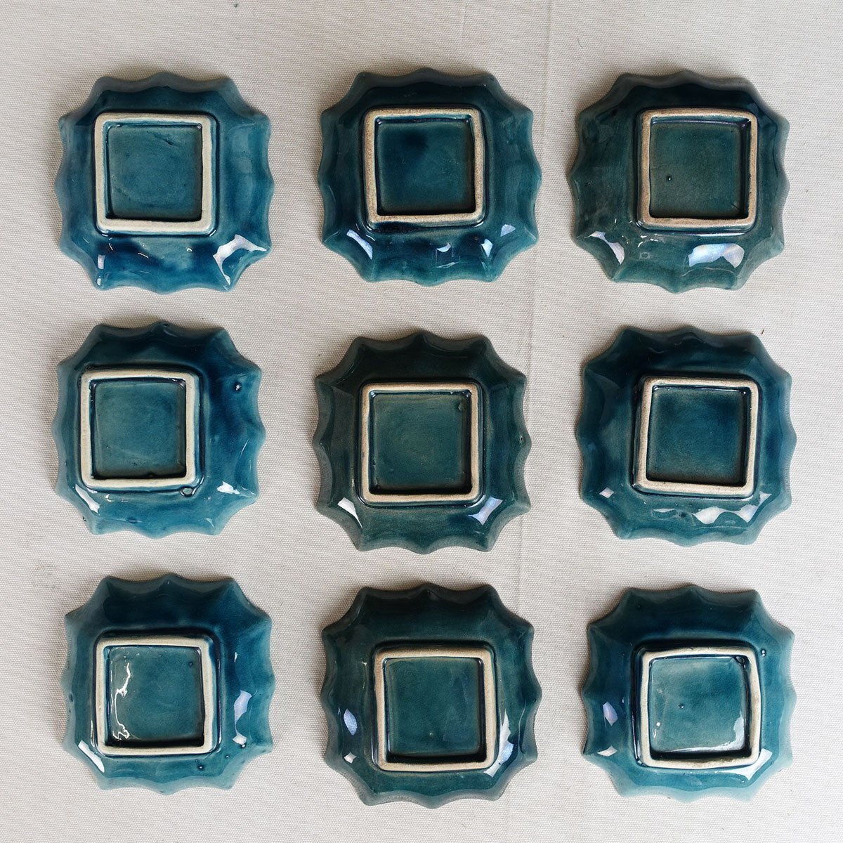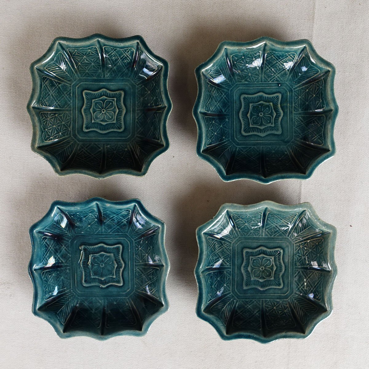 整理品 蔵壷◆『珉平焼 瑠璃釉 花文様』 14枚 陶磁器 淡路焼 伝統工芸 賀集珉平 四方皿 角皿 小皿 豆皿 茶道具 兵庫県南淡路 江戸後期明治