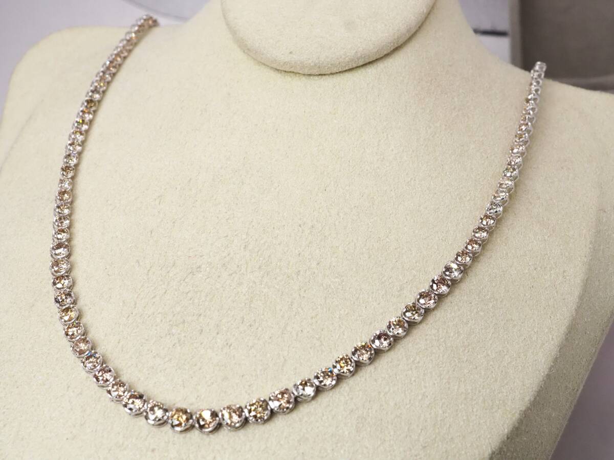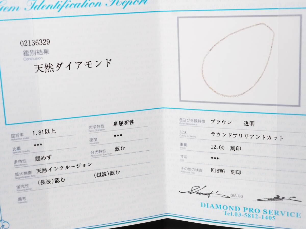 鑑別書付 K18WG 天然ダイヤモンド 12.00ct/11.0g フルエタニティ ネックレス