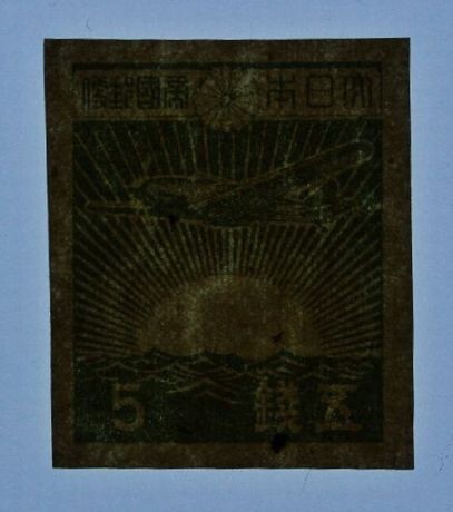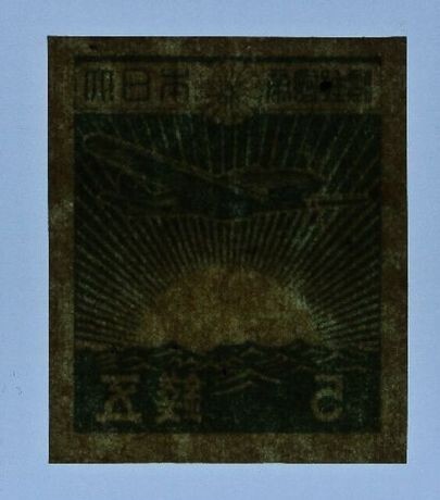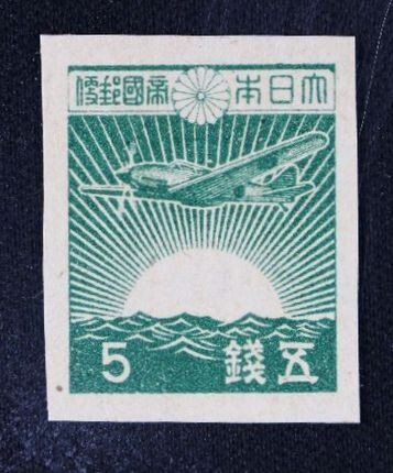 ☆出品商品名→ 『第3次昭和切手/旭日と飛燕機』5銭/せますかし NH美品(透かし画像②③はサンプルです。同じ100面シートから切抜いております)
