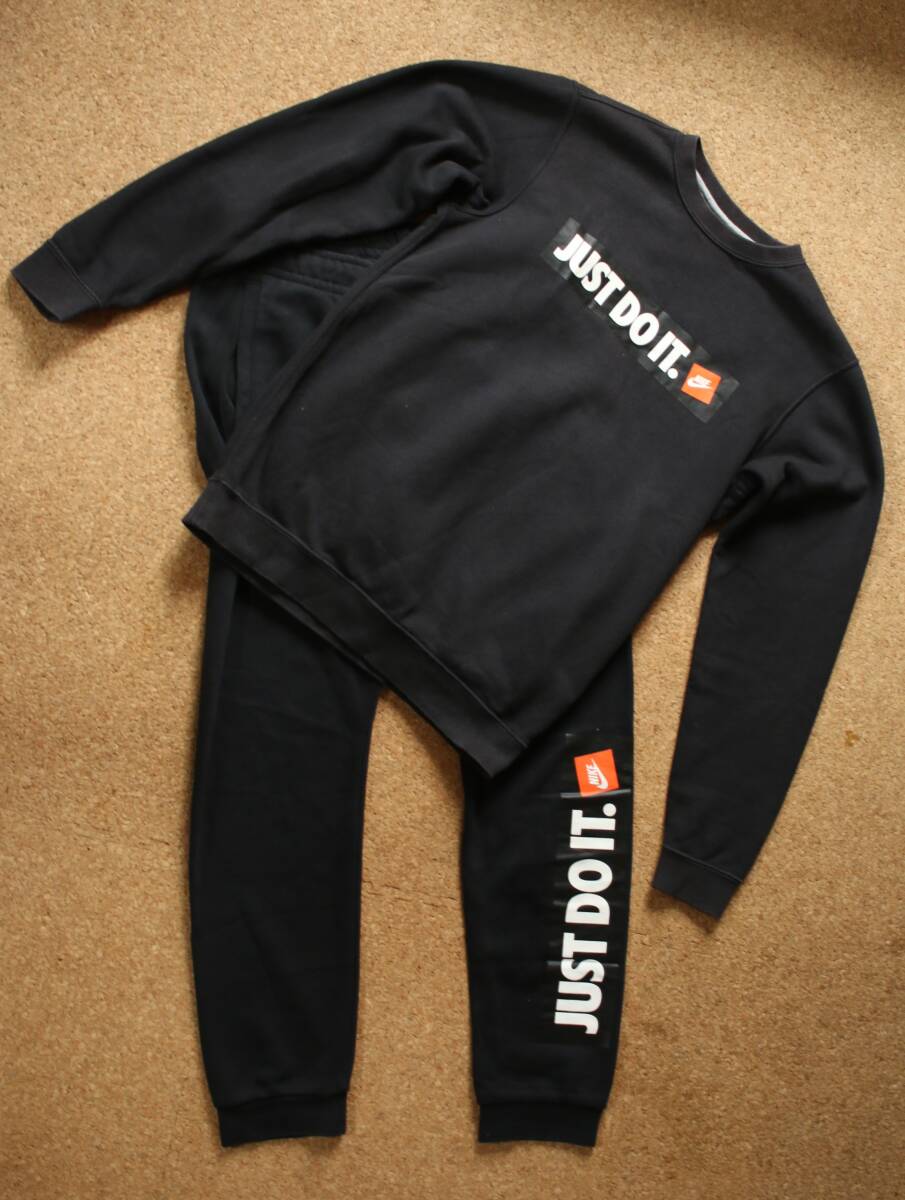 ★1円 NIKE ナイキ スウッシュ デカ ロゴ プリント 上下セット スウェット パンツ セットアップ 黒 ブラック S スウォッシュ ジョーダン