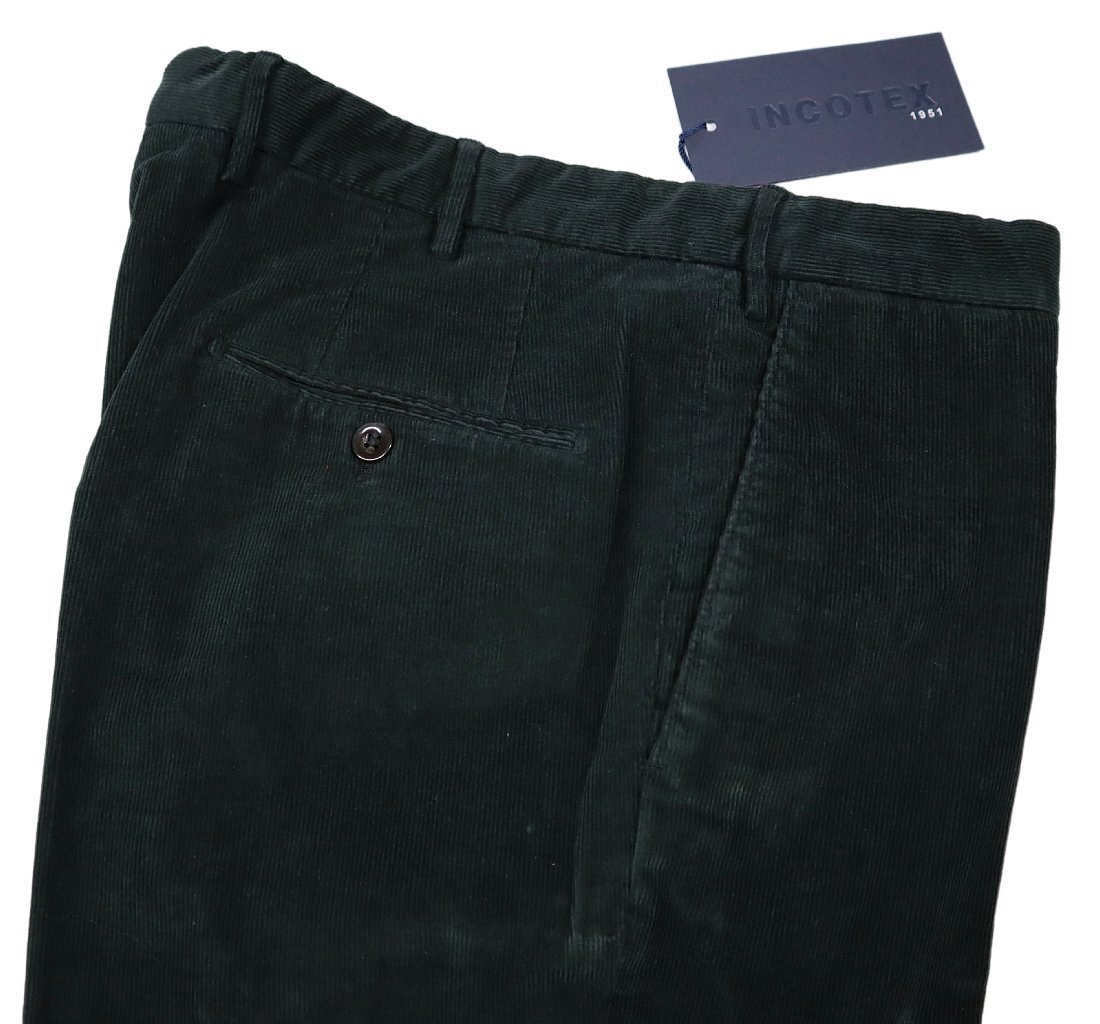 高級クラシコJKに合う、ドレスコーデュロイ!【 INCOTEX / インコテックス (伊 】紳士のエレガントREGULAR FIT ストレッチパンツ深緑 52XXL
