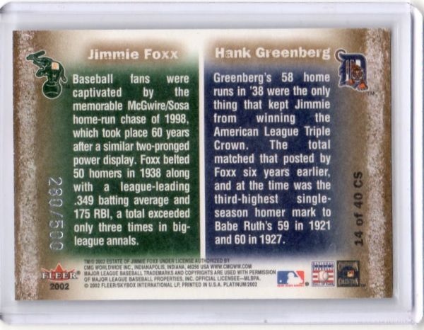 ★☆ハンク・グリーンバーグ カード Vol.7 2002FLEER PLATINUM CORNERSTONES NUMBERED #14 500枚限定☆★ | |
