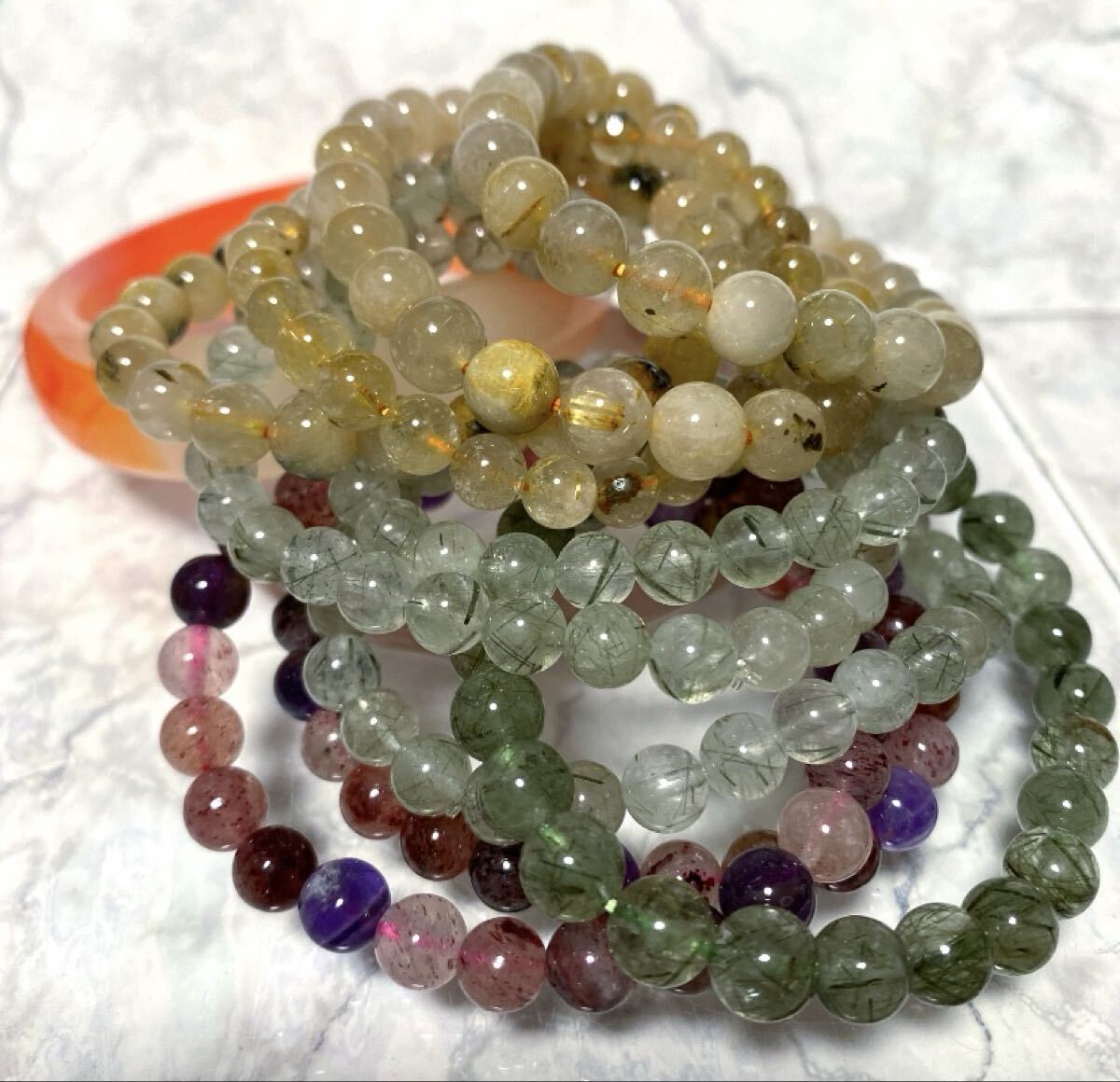 ルチルクォーツ、チェリークォーツ、グリーンルチル、他不明です。よく分からない為、1円〜オークションで出品します。