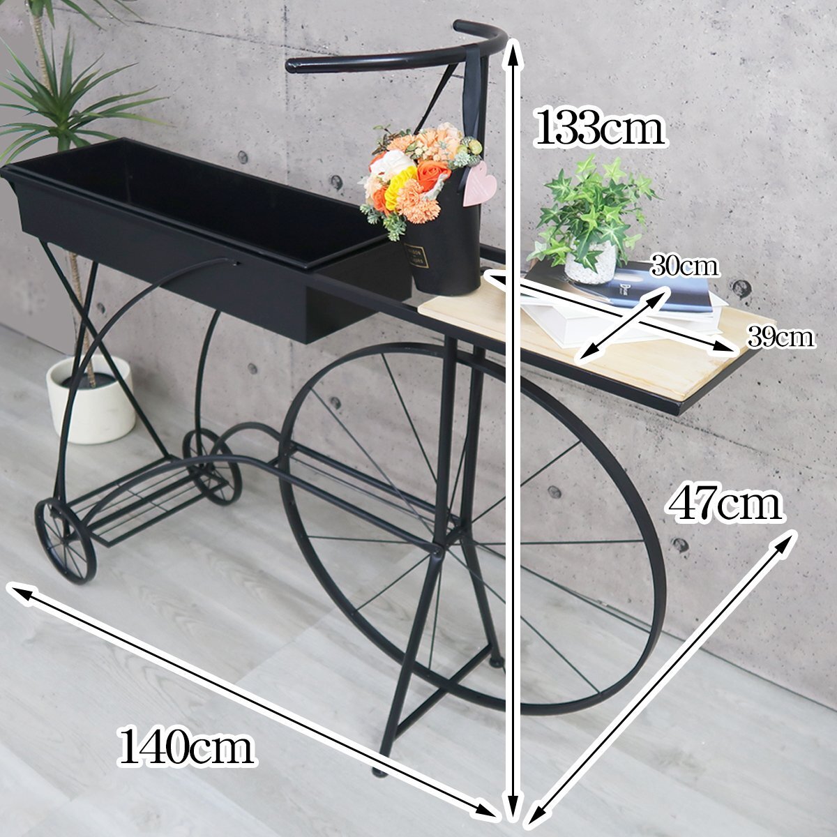 ![]() 自転車をモチーフにしたおしゃれなプランタースタンドです。 本物と見間違う様な“リアルさ”にこだわって作られており、 遊びゴコロくすぐる斬新なデザイン。 室内や庭の装飾のアクセントにピッタリ! プランタースタンドとして使うだけでなく、 小物入れやおしゃれなオブジェとしてお使い頂けます。 ユーズド加工が施されたアイアン製。 使い古した自転車の様なビンテージライクなデザインがおしゃれ空間の演出に! ご自宅用はもちろん、プレゼントや店舗用のオブジェとしても! 日当たりの良いべランダやリビングの彩り、おしゃれなカフェの店舗装飾などに! ・商品サイズ:画像をご参照下さい。 ・材質:アイアン |
