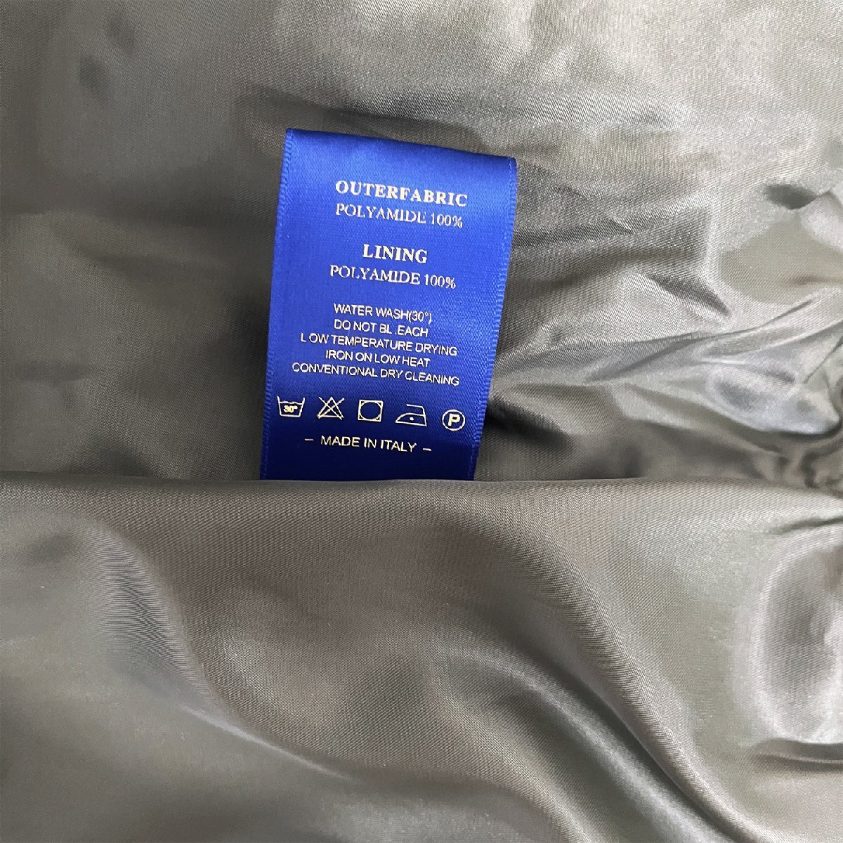 耐久性のあるポリアミド素材を使用し、丈夫でお手入れも簡単。表地は撥水加工が施されており、雨粒をはじき、汚れが付きにくくなっています。また、耐摩耗性にも優れ、長持ちが期待できます。裏地には肌触りの良い滑らかな生地を使用しており、インナーとの摩擦が少なく、脱ぎ着もスムーズ。
