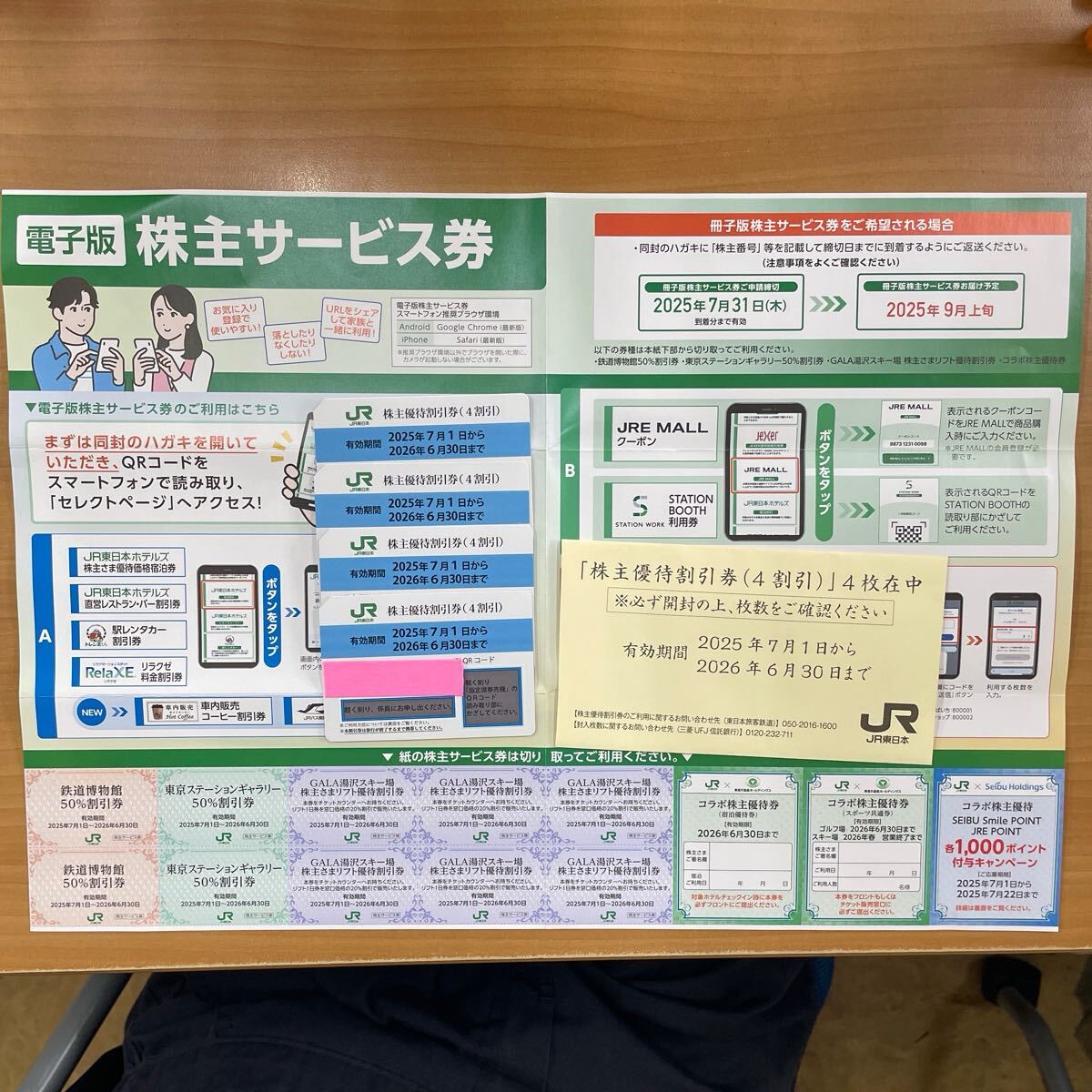 JR東日本株主優待券4枚セットになります!
