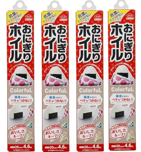 4 おにぎりホイル Colorful柄 吸湿するからベチャつかない, 20cm×4.6m 4個セット