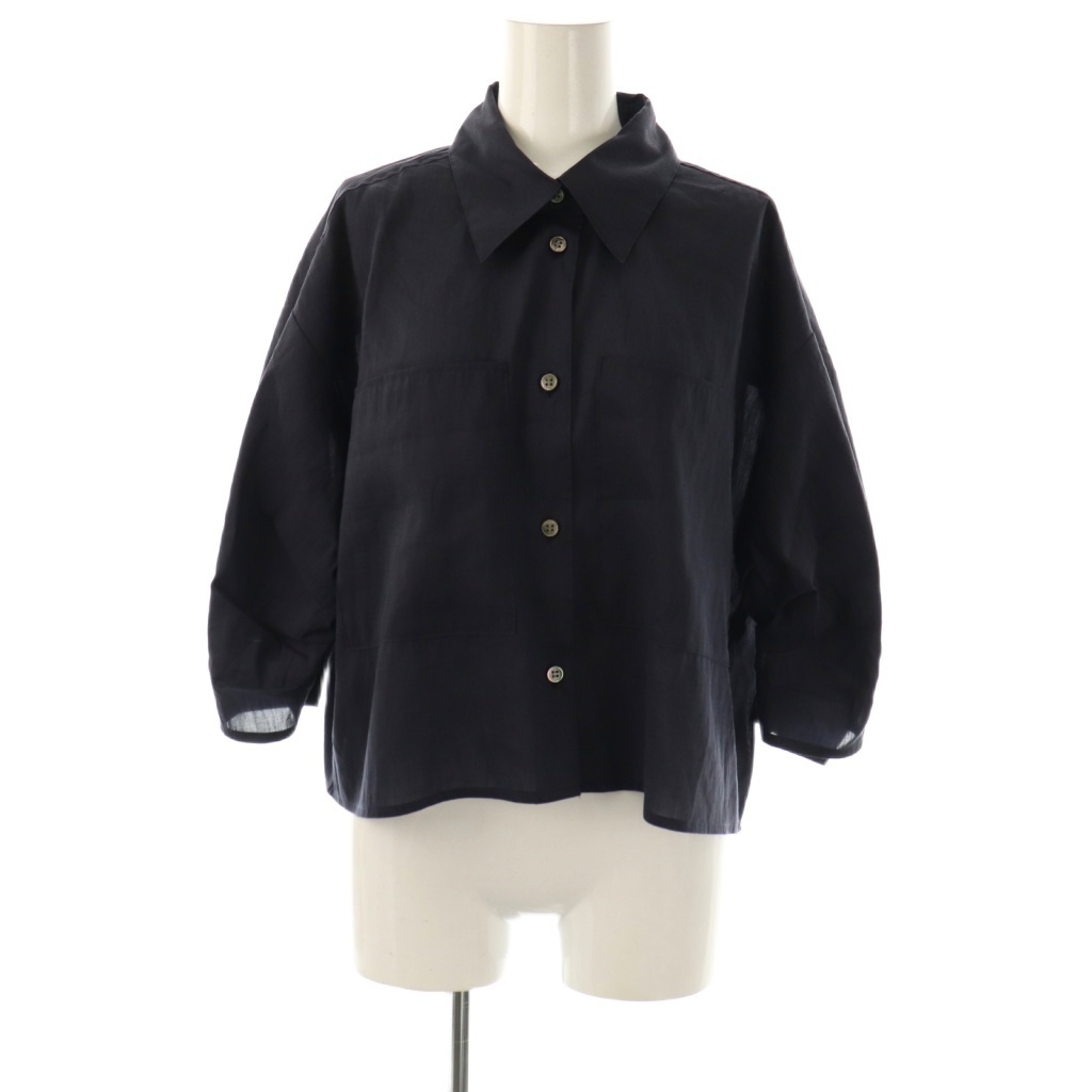 イエナ IENA 25SS リネンミックスクロップドシャツ 五分袖 F 紺 ネイビー /AT ■OS レディース