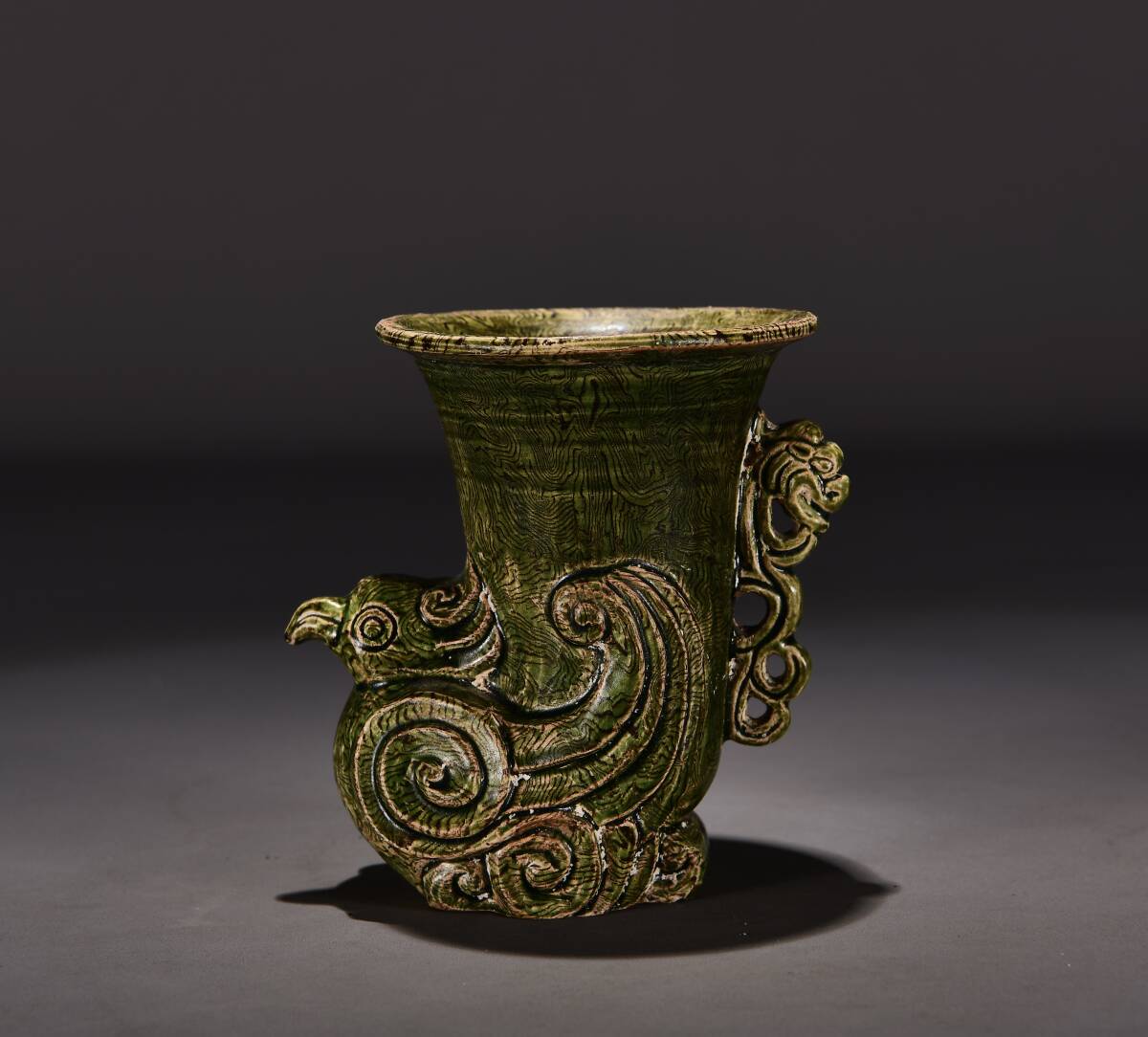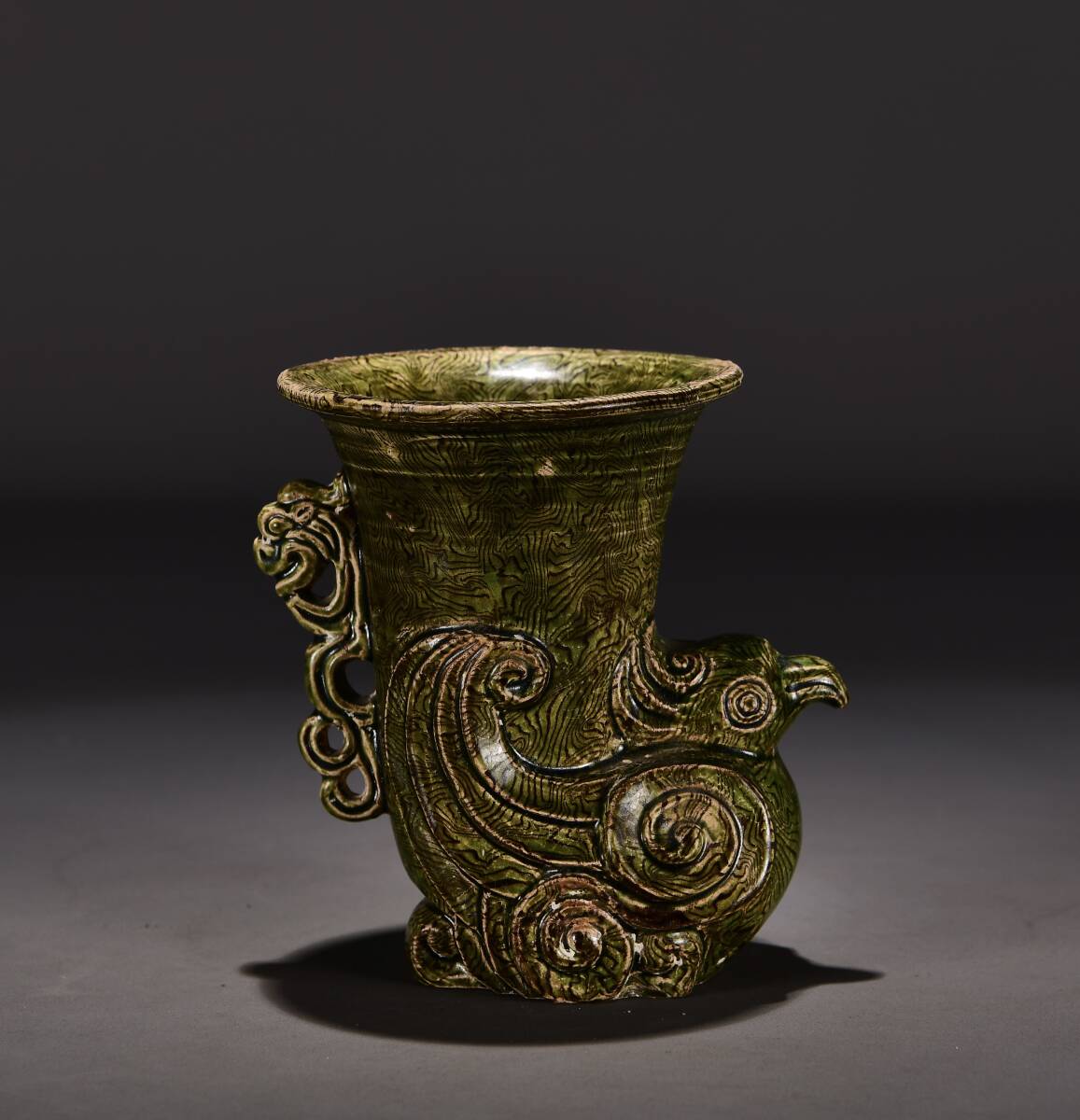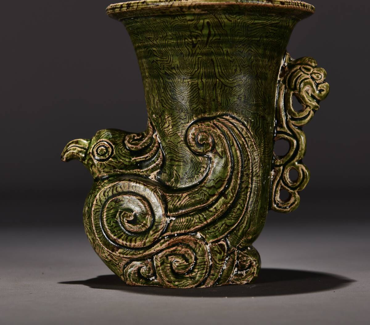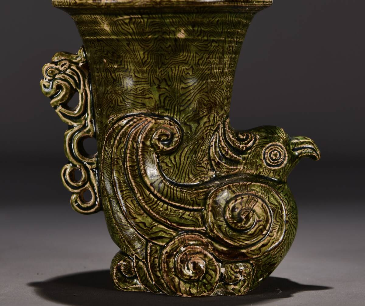 【超珍館蔵】唐 古陶瓷品 絞胎 綠釉 鳳尊 陶藝 古賞物 古董品 古美術品 時代物 旧家蔵出 稀少珍蔵品