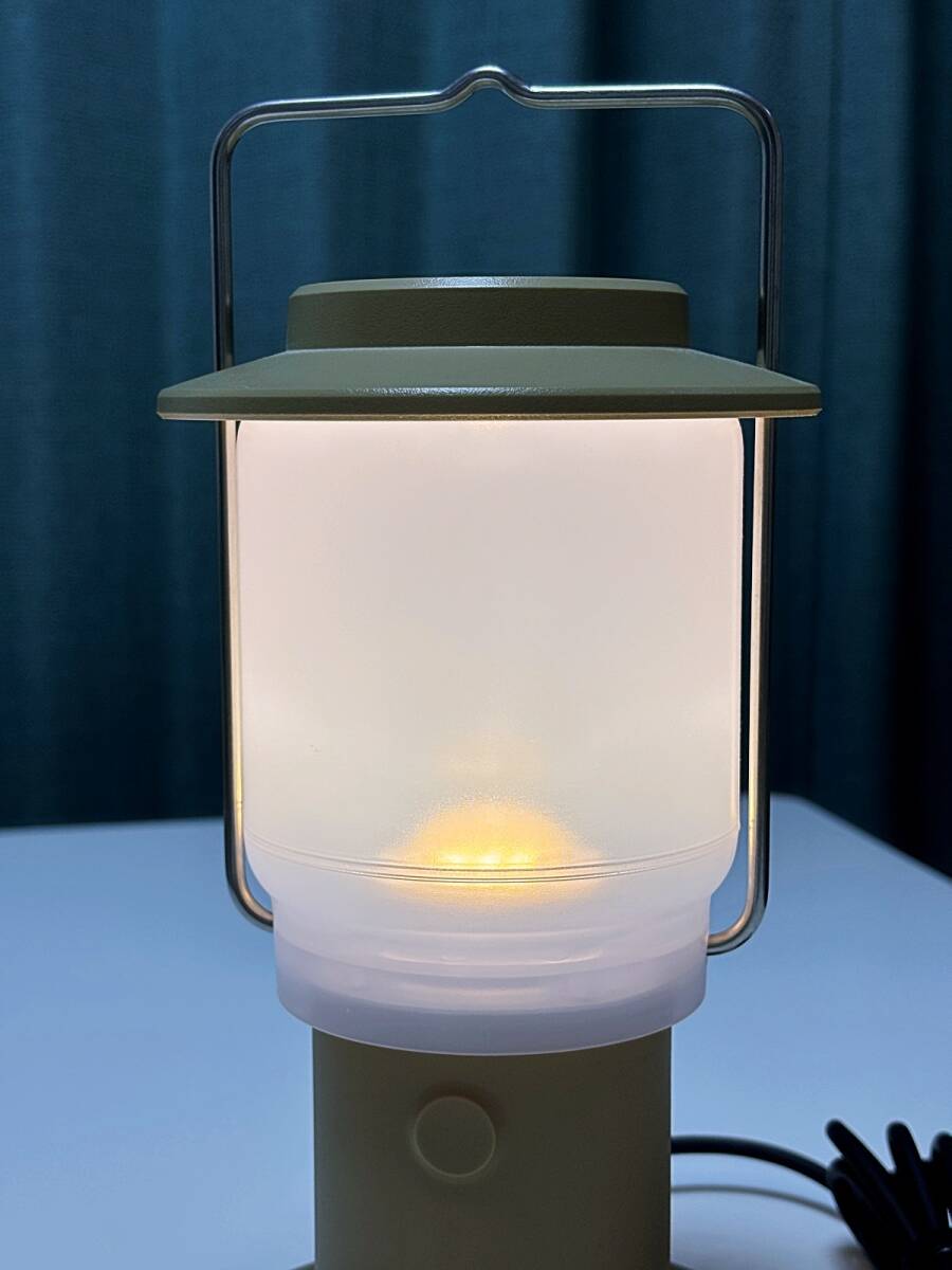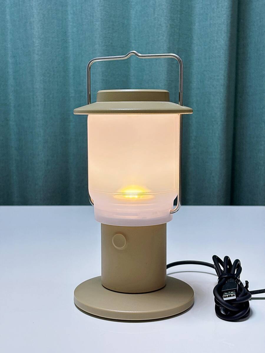 こちらの商品は、家でも外でも使える充電式のランタンで、スタンド型充電台の上で卓上照明として使用しつつ、キャンプでのランタンと同様いつでも好きな場所に持っていくことができます。