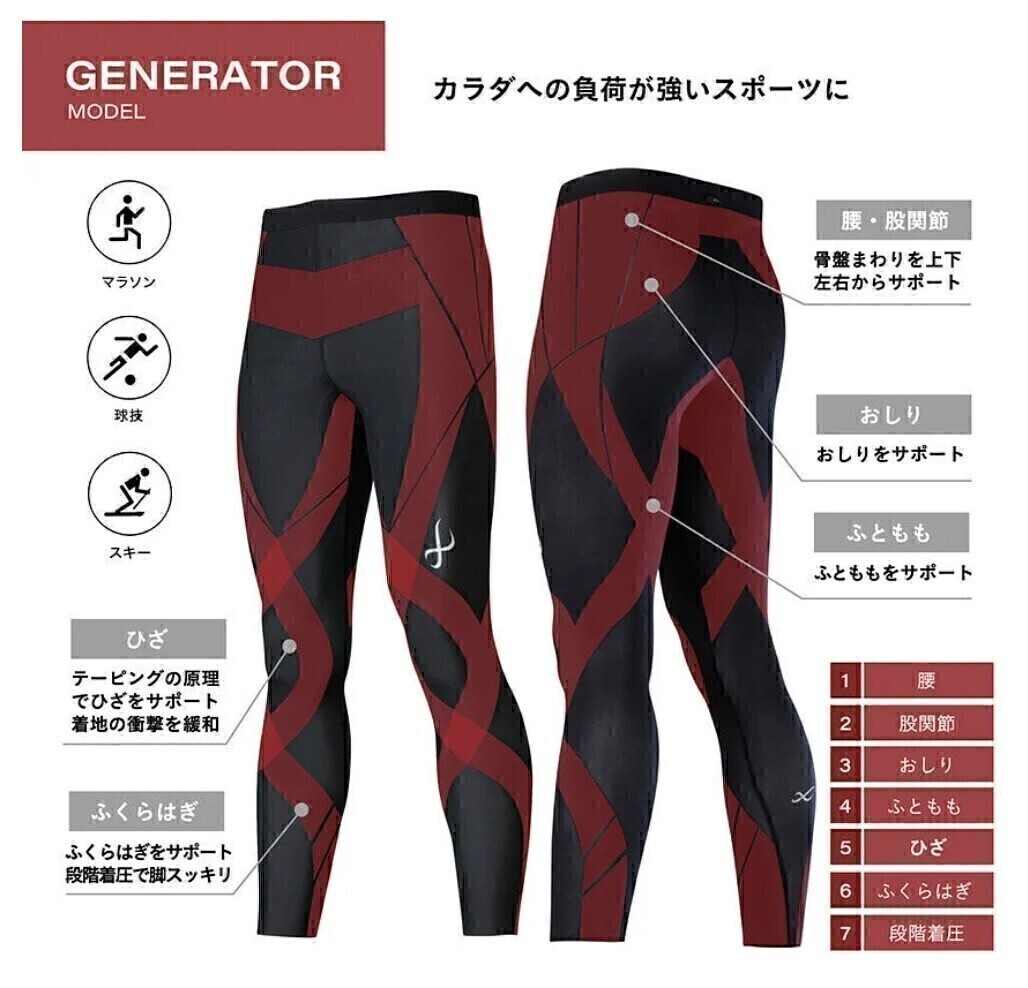 CW-Xのハイサポートモデル。マラソン・球技・スキー・スノーボード等、カラダへの負荷が強いスポーツにおすすめ。