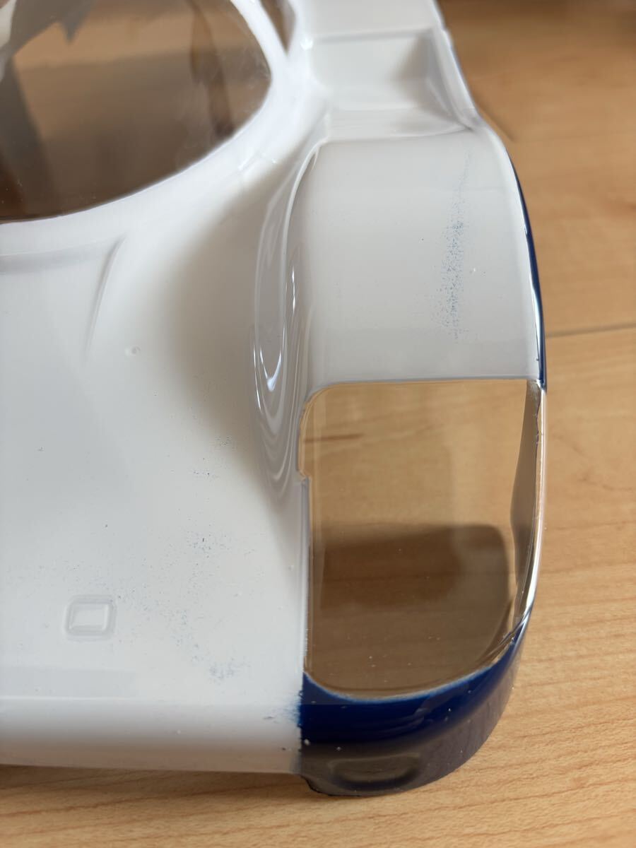 塗装は、中性洗剤洗浄⇒下地プライマー⇒ブルー&ホワイトのツートン⇒裏打ちはシルバーで仕上げています。