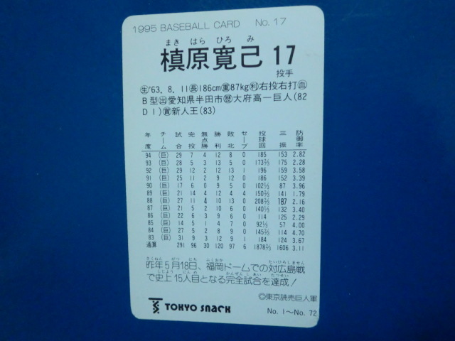 カルビー プロ野球 1995 No.17 槙原寛己 東京スナック