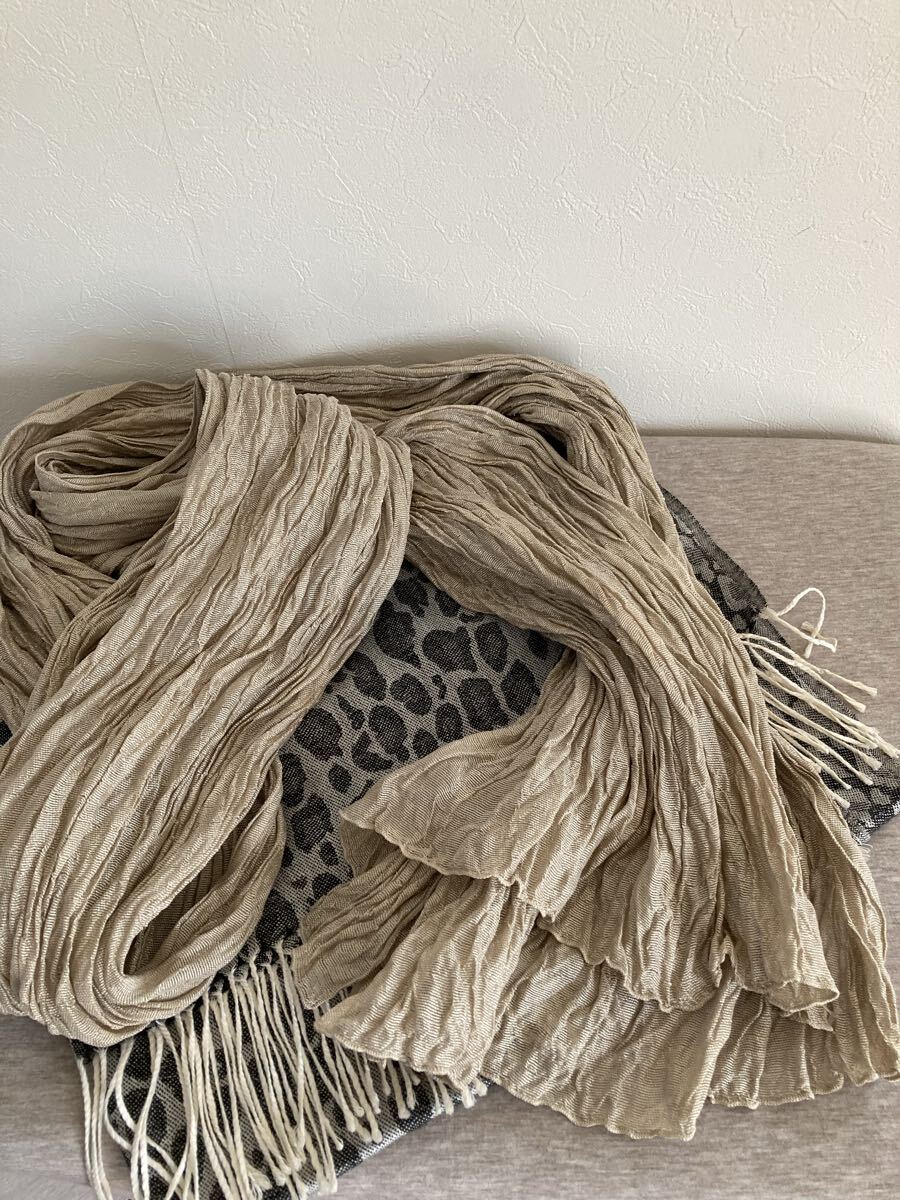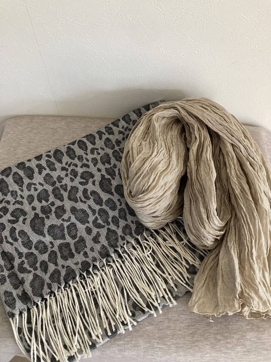 未使用 上品 大判 アニマル模様 ベージュ マフラー セットです。