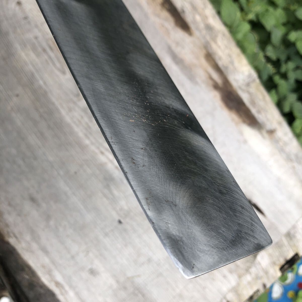 全体に擦り傷研ぎ傷がございます、柄が劣化で欠けています、包丁は研ぎ直されてよく切れます。
