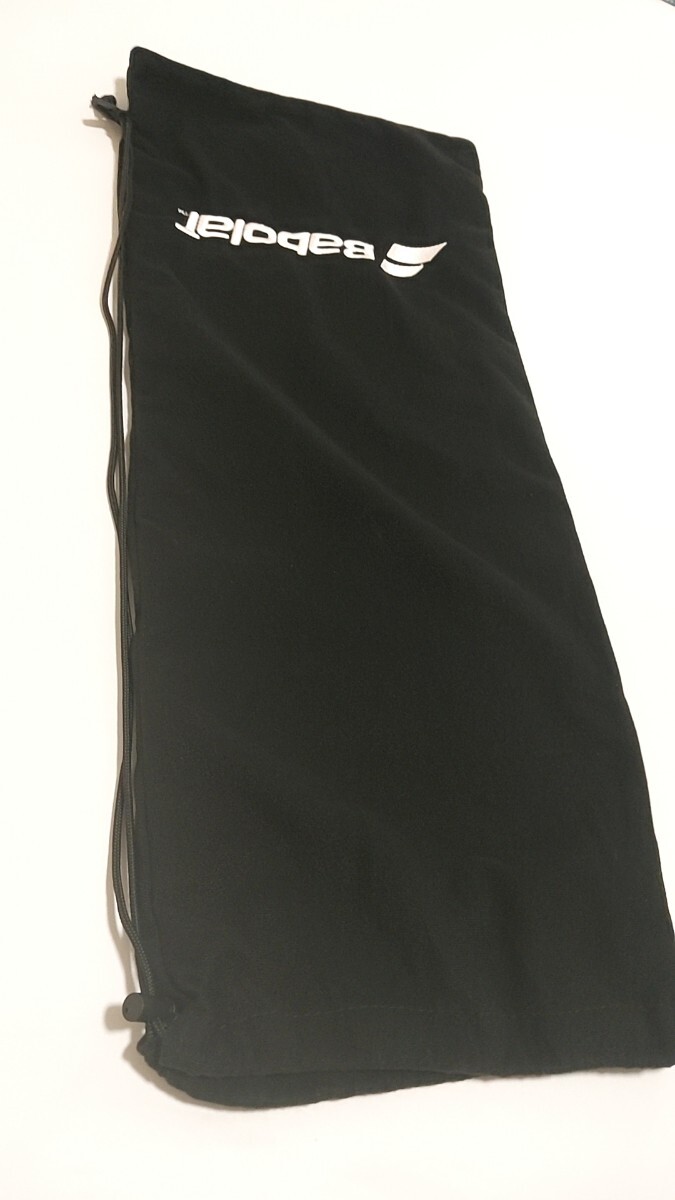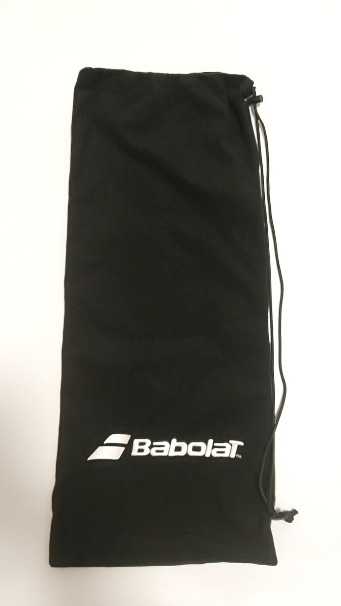 黒色のテニスラケットバッグ、バボラロゴ入りです。通常使用によるシワ、汚れがございます。