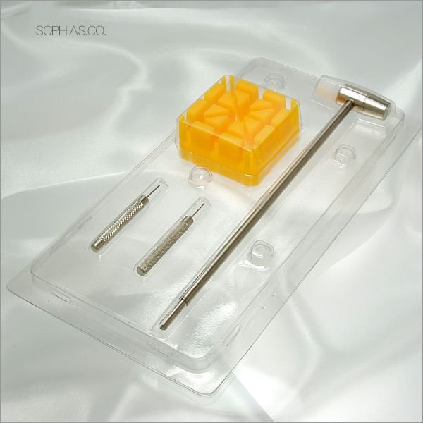 腕時計のメタル(金属)ベルトでピンを抜いて調整するタイプのための工具3点セットです。