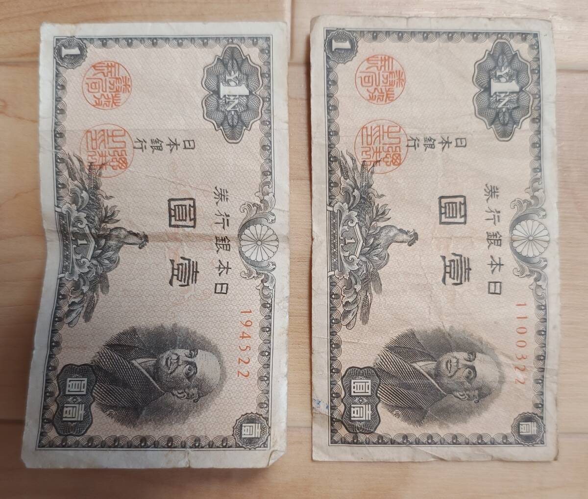 壱圓紙幣2枚セットです