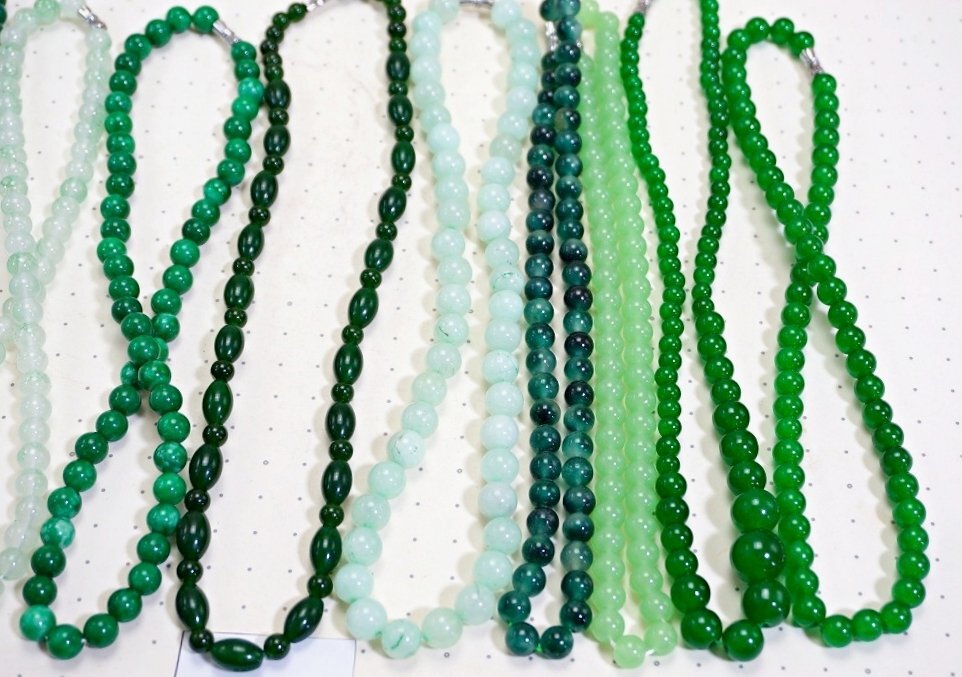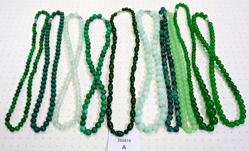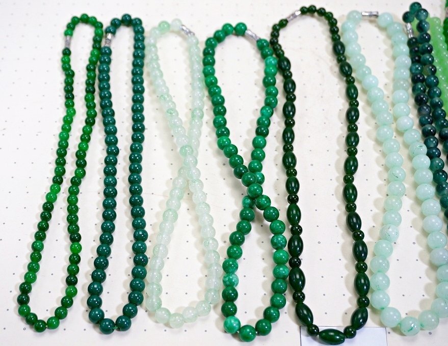 ヒスイ メノウ等 緑石系 天然石ネックレス ペンダント まとめて10点セット ヒスイ メノウ等の緑石系 天然石のネックレス ペンダント 10点セットです。 とても丁寧に研磨されており、艶、色味ともに非常に美しいものです。 写真がお譲りする商品の全てになります。 材質: ヒスイ メノウ等の緑石系の天然石 サイズ: ネックレスが置かれている下地の模様の点の間隔が1cmですので、参考にしてください。 個数: 10点 当店の他の出品商品との同梱料は下記のとおり落札1点につき200円です。 |