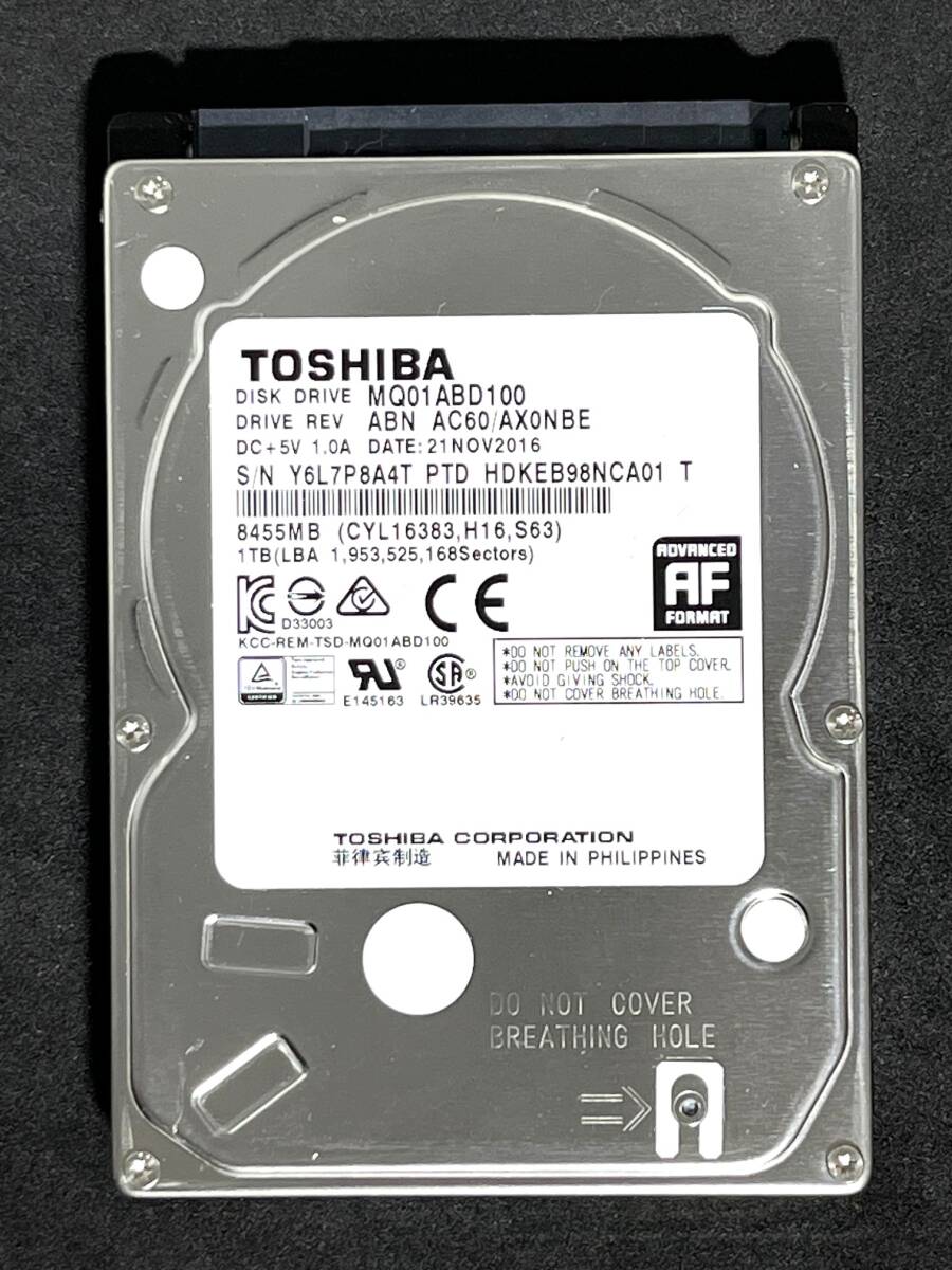★ 1TB ★【使用時間:2069h】 MQ01ABD100 / TOSHIBA 2016年製 良品 正常品 2.5インチ 内蔵 HDD 9.5mm SATA 1000GB [管理■598A]