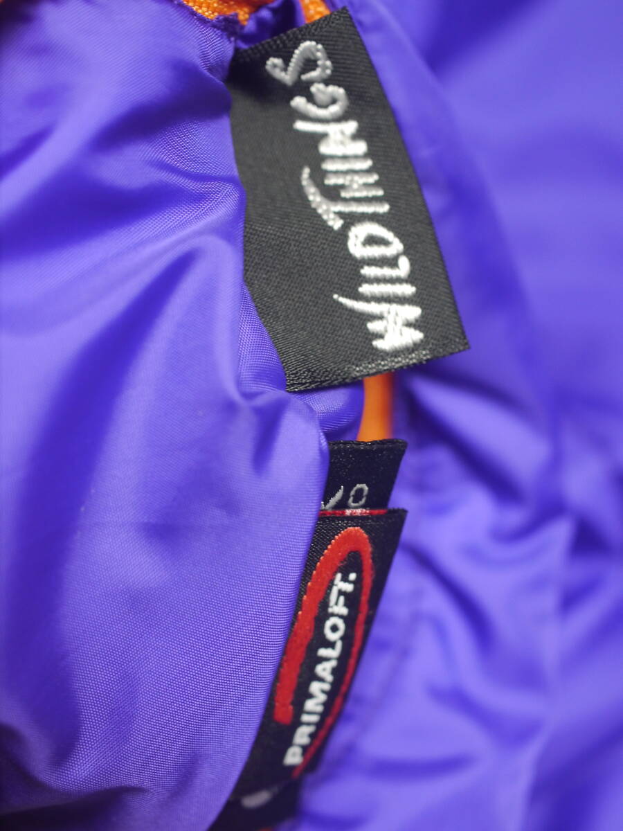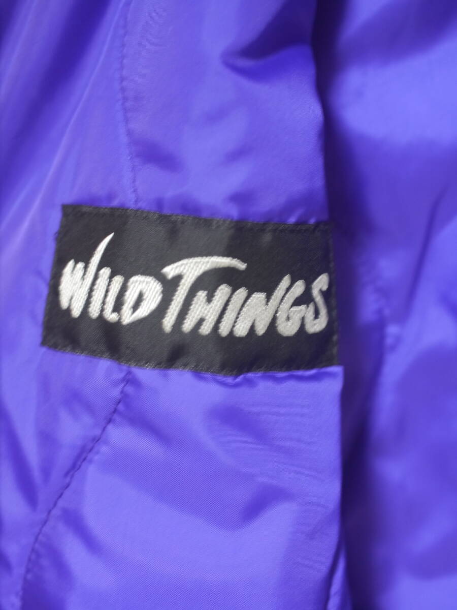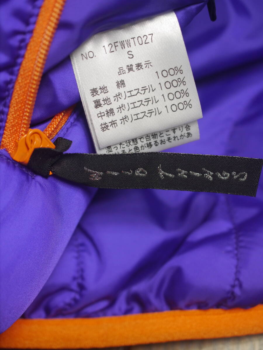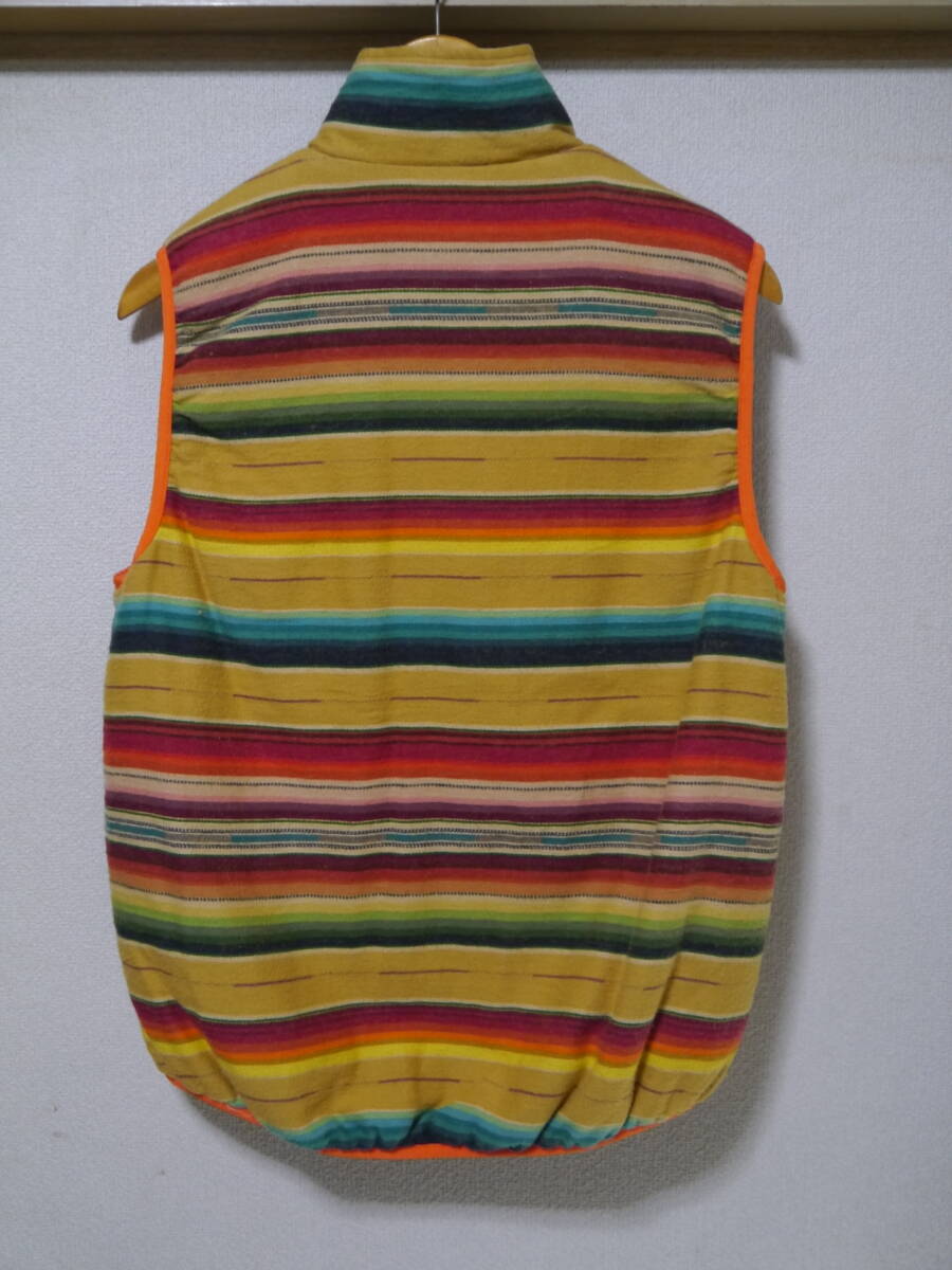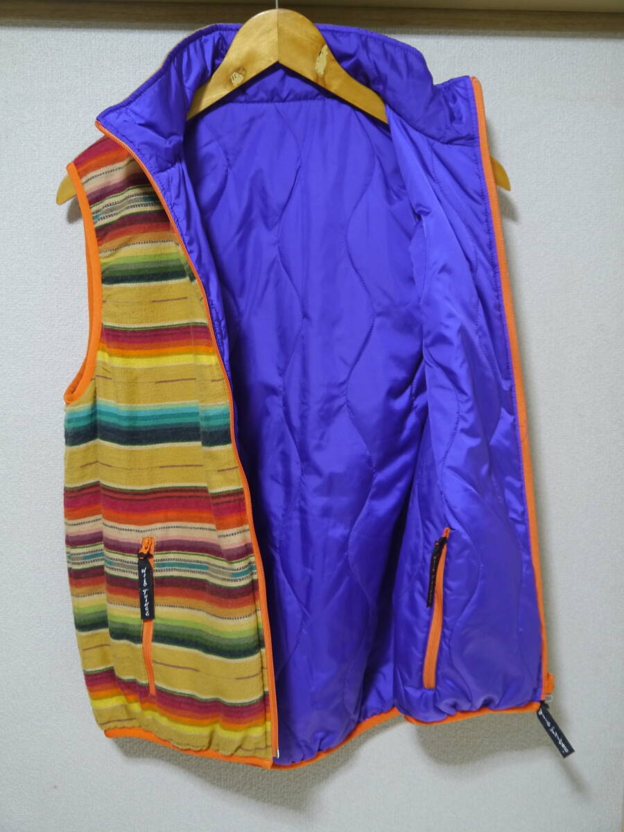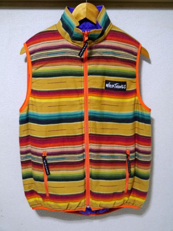 USED品正規品のワイルドシングスのプリマロフトのリバーシブルのネイティブ ボーダー柄(裏は紫色)のフロントジップのベストです。