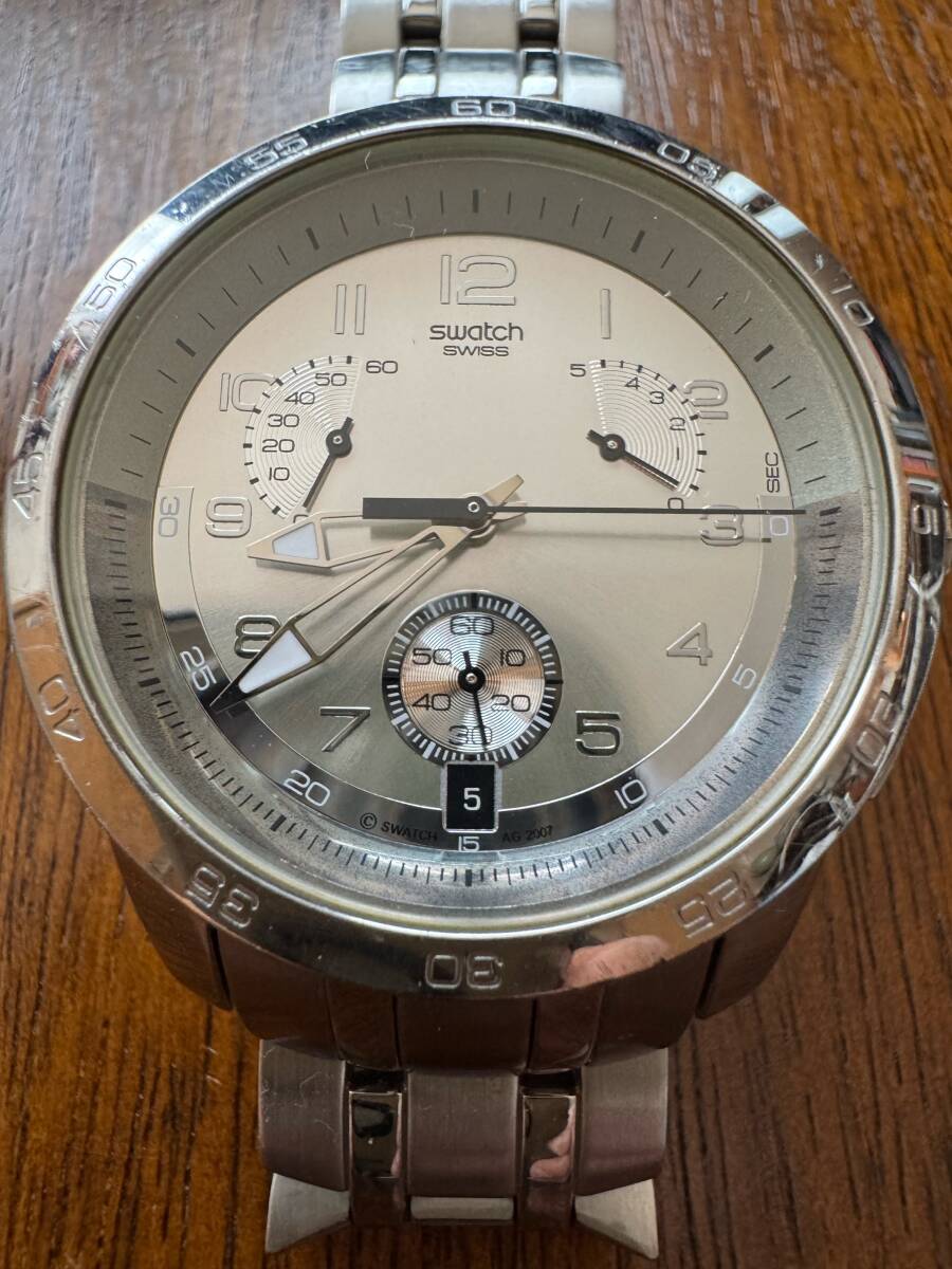 2007年 スウォッチ アイロニー クロノグラフ レトログラード ステンレスバンドの中古品になります。07年から約8年程普段使いしてました、その後ストレージで保管。