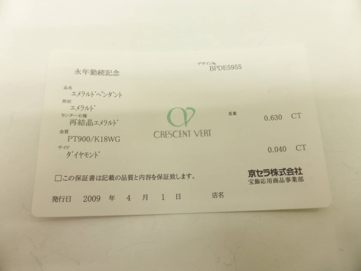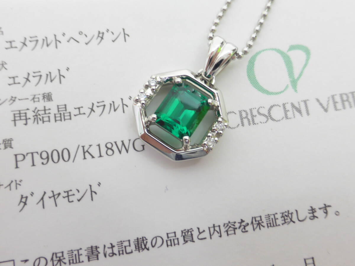 クレサンベール Pt900/K18WG エメラルドペンダント | ||||