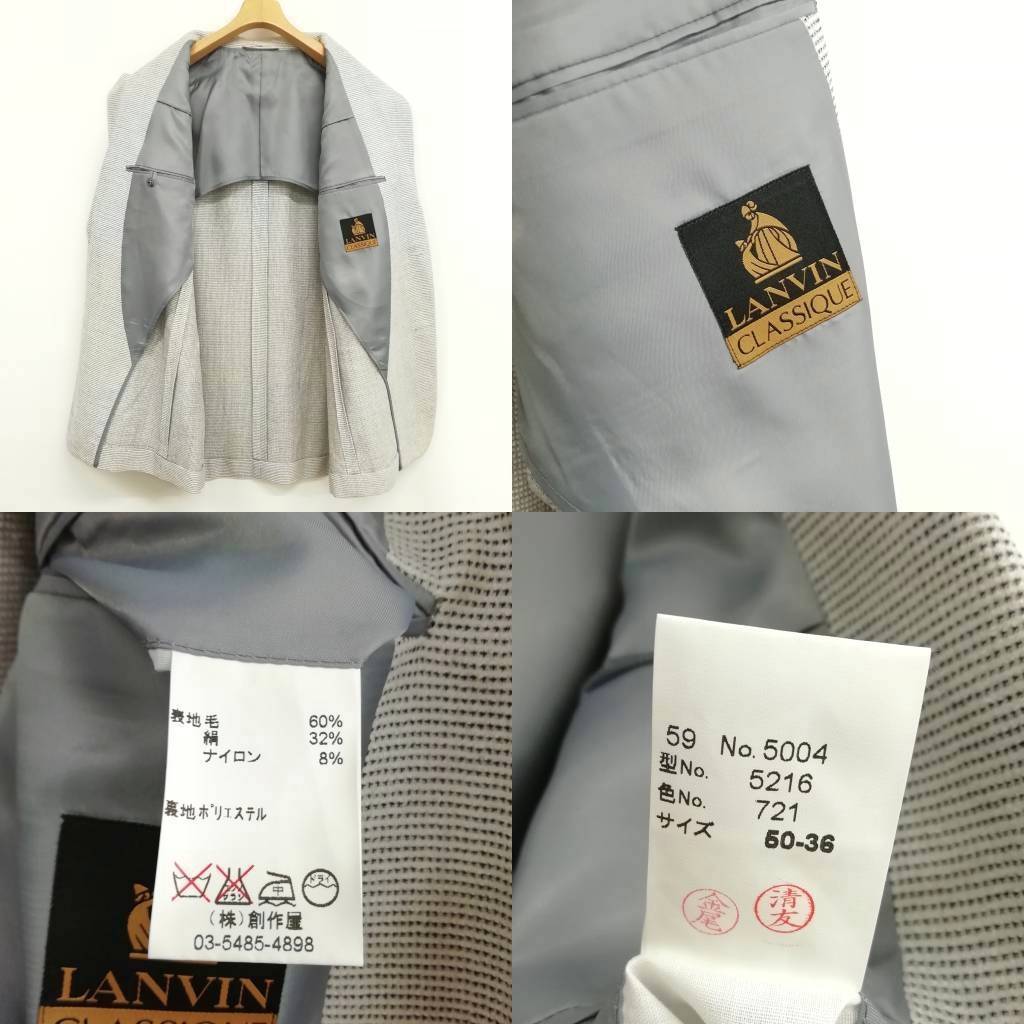 ランバン LANVIN CLASSIQUE シングル 段返り 3B スーツ セットアップ ジャケット スラックス 50-36 ライトグレー系 メンズ