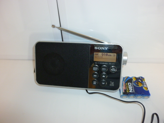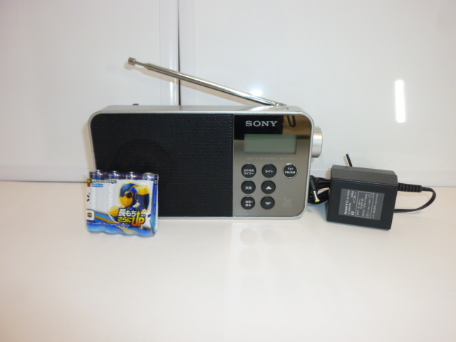 sony XDR-55TVです。1SEG TV.FM.AMの受信確認が出来ました。ロッドアンテナ、おやすみタイマー、目覚まし機能、デジタル表示、ライト、タイマー機能、プリセット機能OK。電池室もきれいです。付属品はパナソニック製の新品単3電池4本とSONY製のACアダプターになります。全体的に非常に綺麗な状態ですが古い商品のため、擦り傷、汚れ、へこみ、サビ、受信感度低下、接触不良、チューニングメーターのズレ等が有る場合も有りますので、ご理解の上NC.NRで宜しくお願いします。発送は60サイズ元払いとなります。