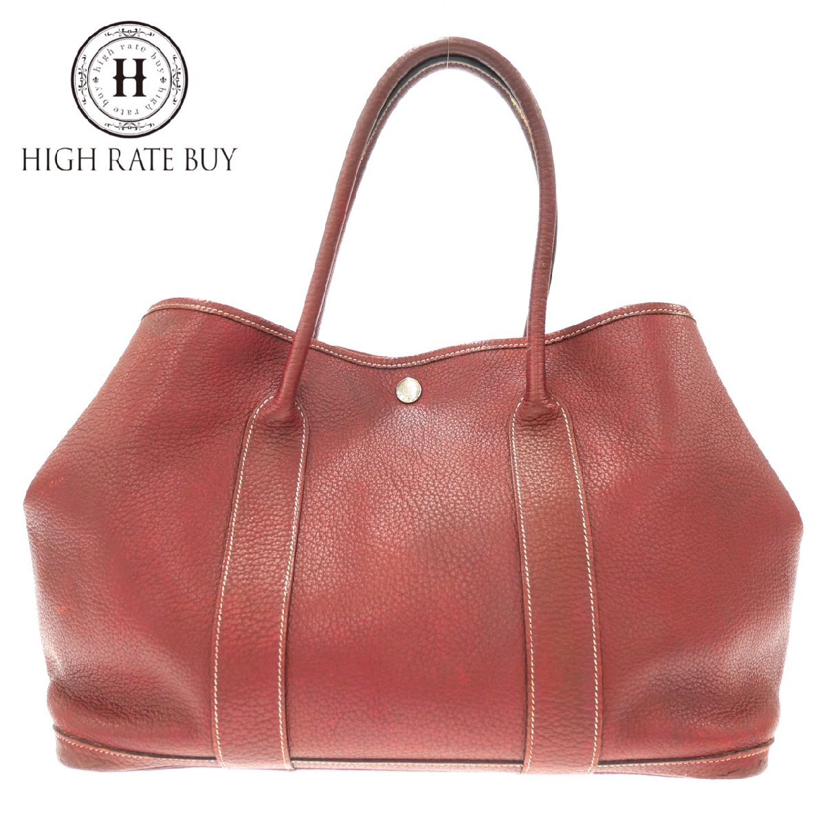 1円スタート HERMES エルメス ガーデンパーティPM □K刻 2007年 ネゴンダ ルージュアッシュ シルバー金具 トートバッグ ハンドバッグ